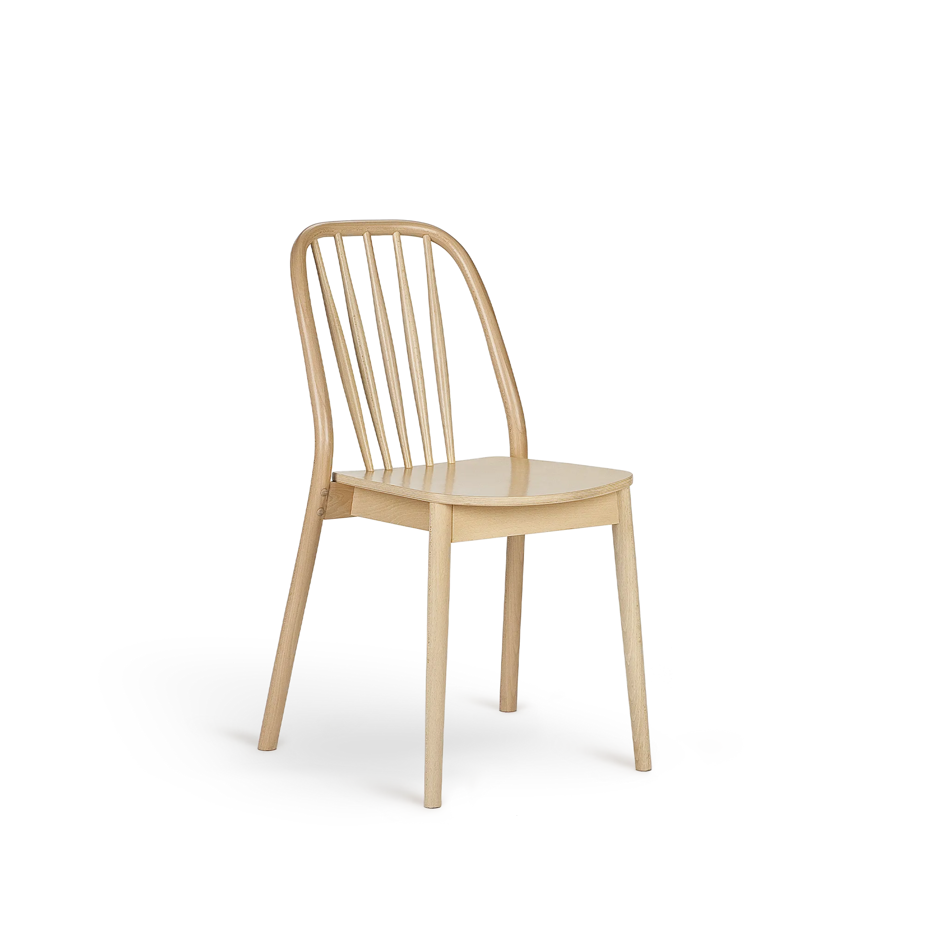 Krzesło Aldo to współczesna interpretacja klasyki – połączenie nowoczesnej formy z tradycyjną techniką gięcia drewna. Charakterystyczne oparcie z pionowymi szczebelkami, przypominającymi pawie pióra, nadaje mu lekkości i artystycznego wyrazu. Smukłe tylne nogi, wygięte z jednego kawałka drewna, tworzą spójną linię z oparciem, podkreślając precyzję rzemieślniczego wykonania.