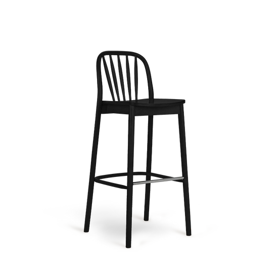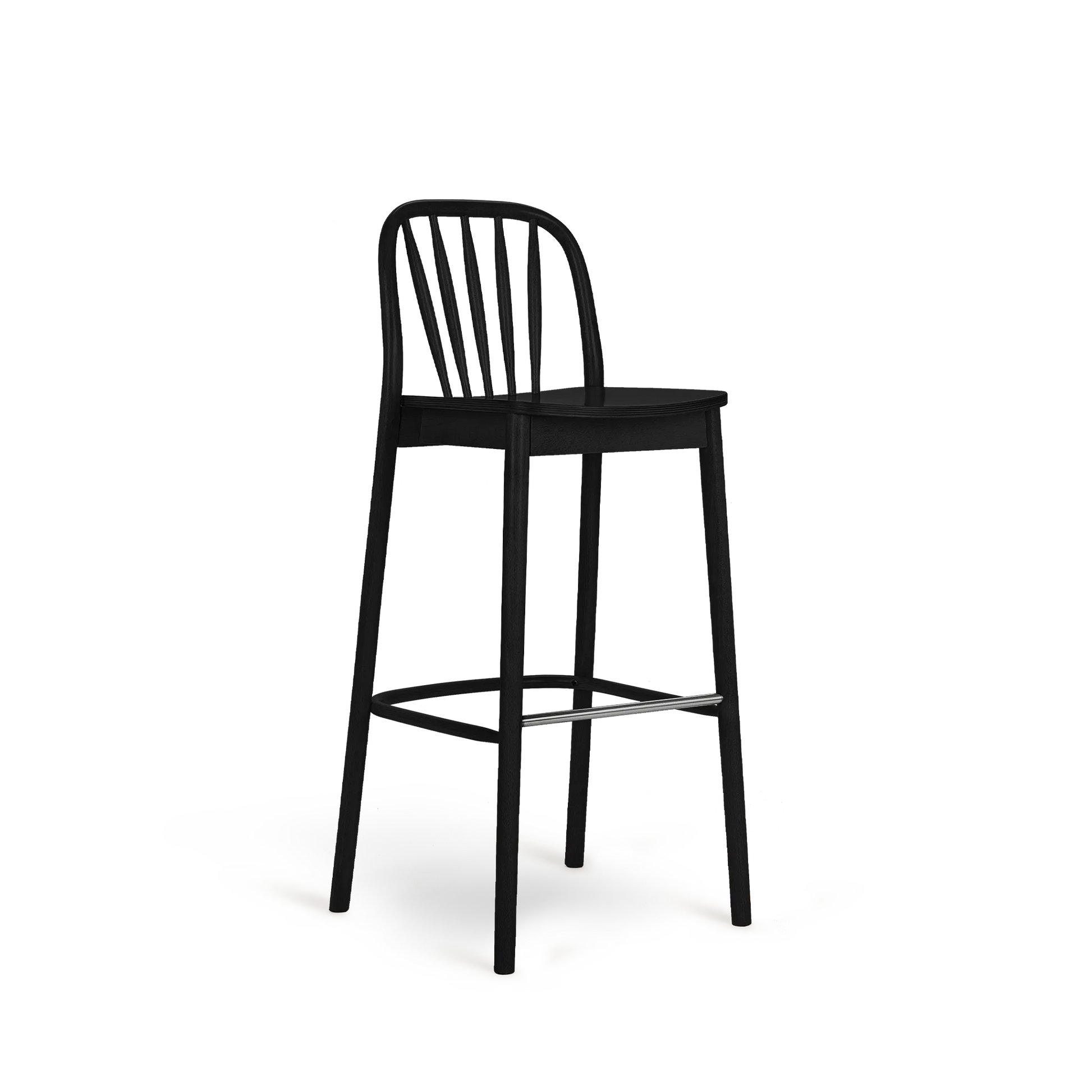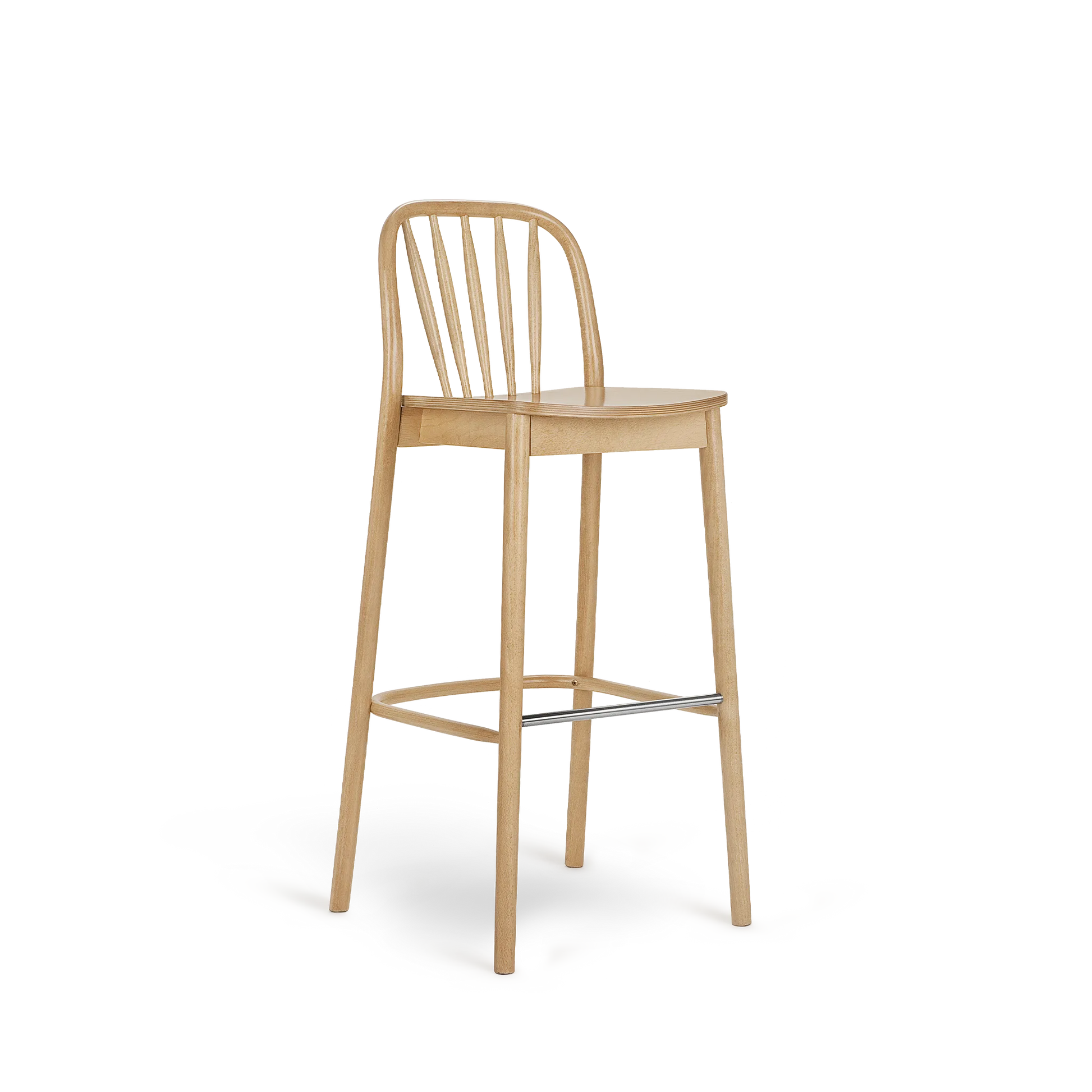 Wysokość siedziska 780 mm sprawia, że hoker idealnie komponuje się ze standardowymi blatami barowymi i wysokimi wyspami kuchennymi, dodając przestrzeniom elegancji i lekkości typowej dla klasycznych mebli giętych.