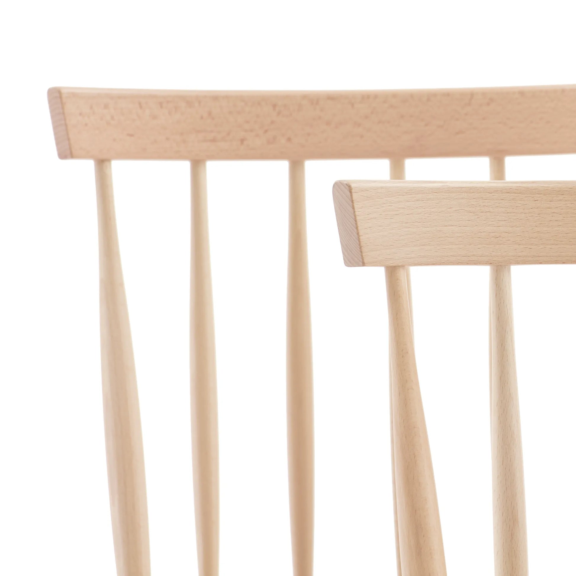Wykonane jest w całości z drewna bukowego – siedzisko ze sklejki, pozostałe elementy z litego drewna. Drewniane nogi połączone poprzeczkami w kształcie litery „H” zapewniają stabilność, a możliwość sztaplowania ułatwia użytkowanie i przechowywanie. Krzesło łączy solidną konstrukcję z estetyką rzemieślniczego wykonania.