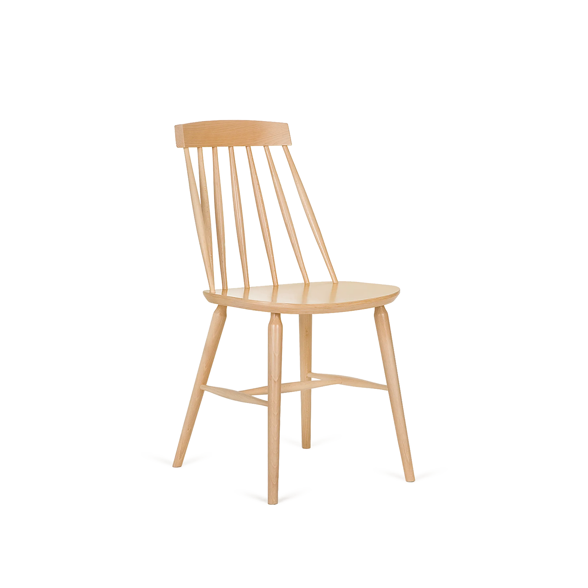 Wykonane jest w całości z drewna bukowego – siedzisko ze sklejki, pozostałe elementy z litego drewna. Drewniane nogi połączone poprzeczkami w kształcie litery „H” zapewniają stabilność, a możliwość sztaplowania ułatwia użytkowanie i przechowywanie. Krzesło łączy solidną konstrukcję z estetyką rzemieślniczego wykonania.