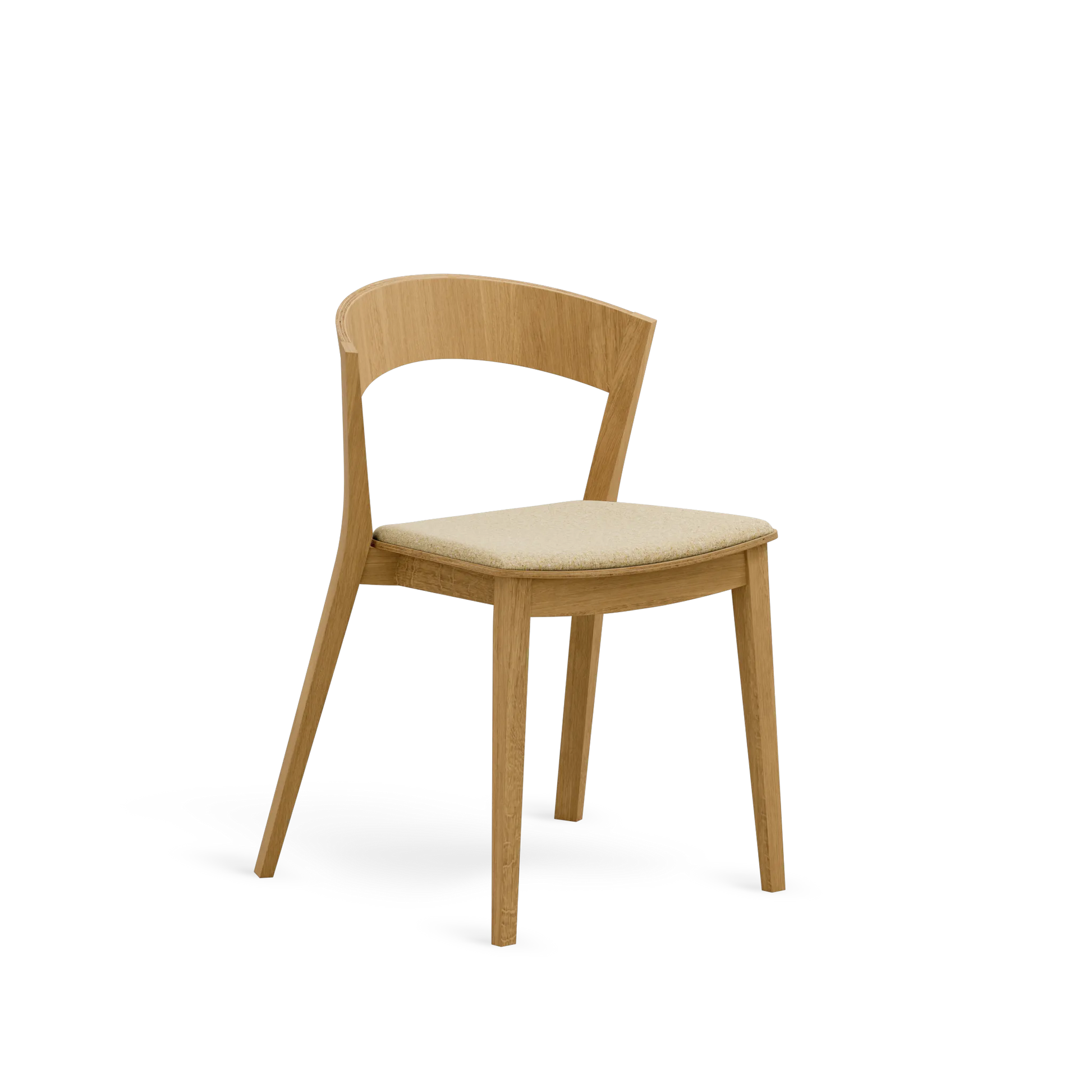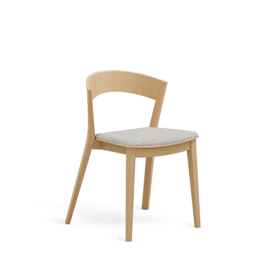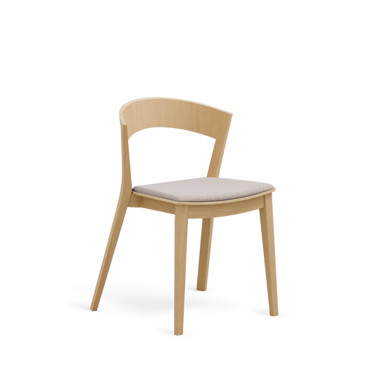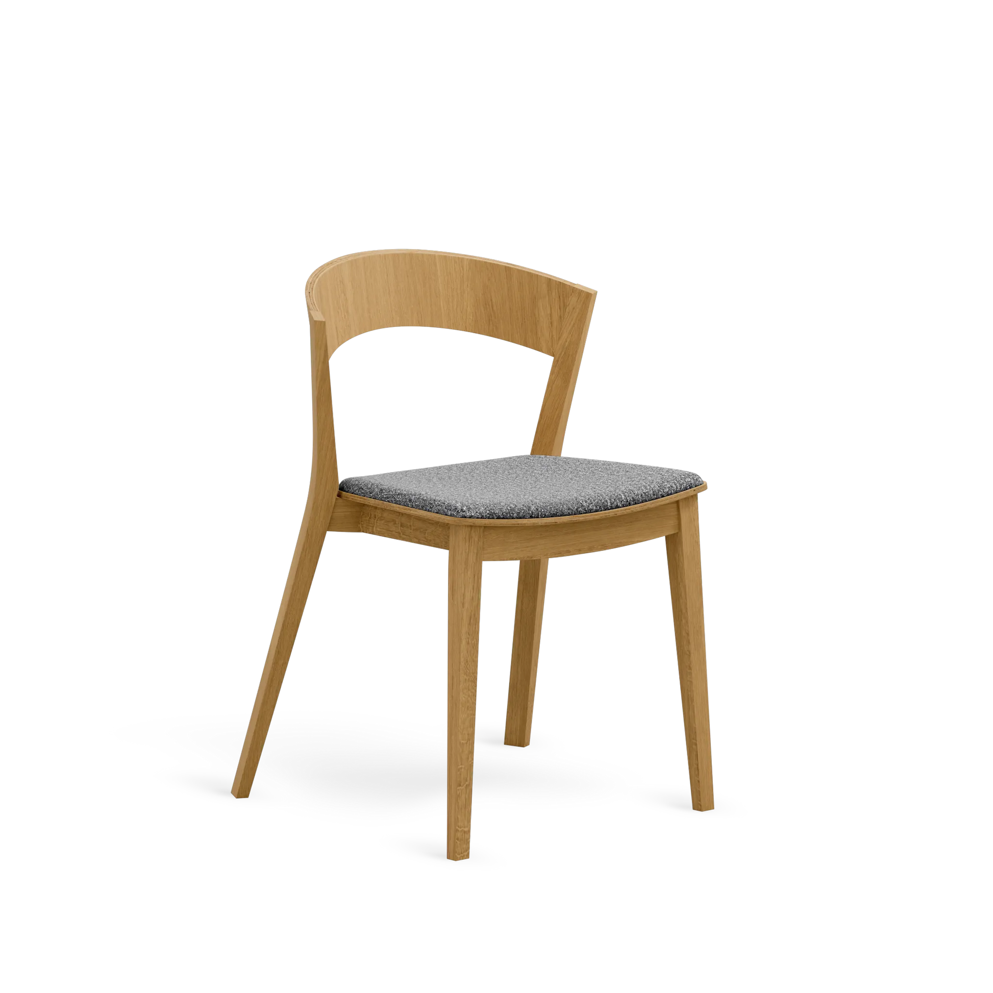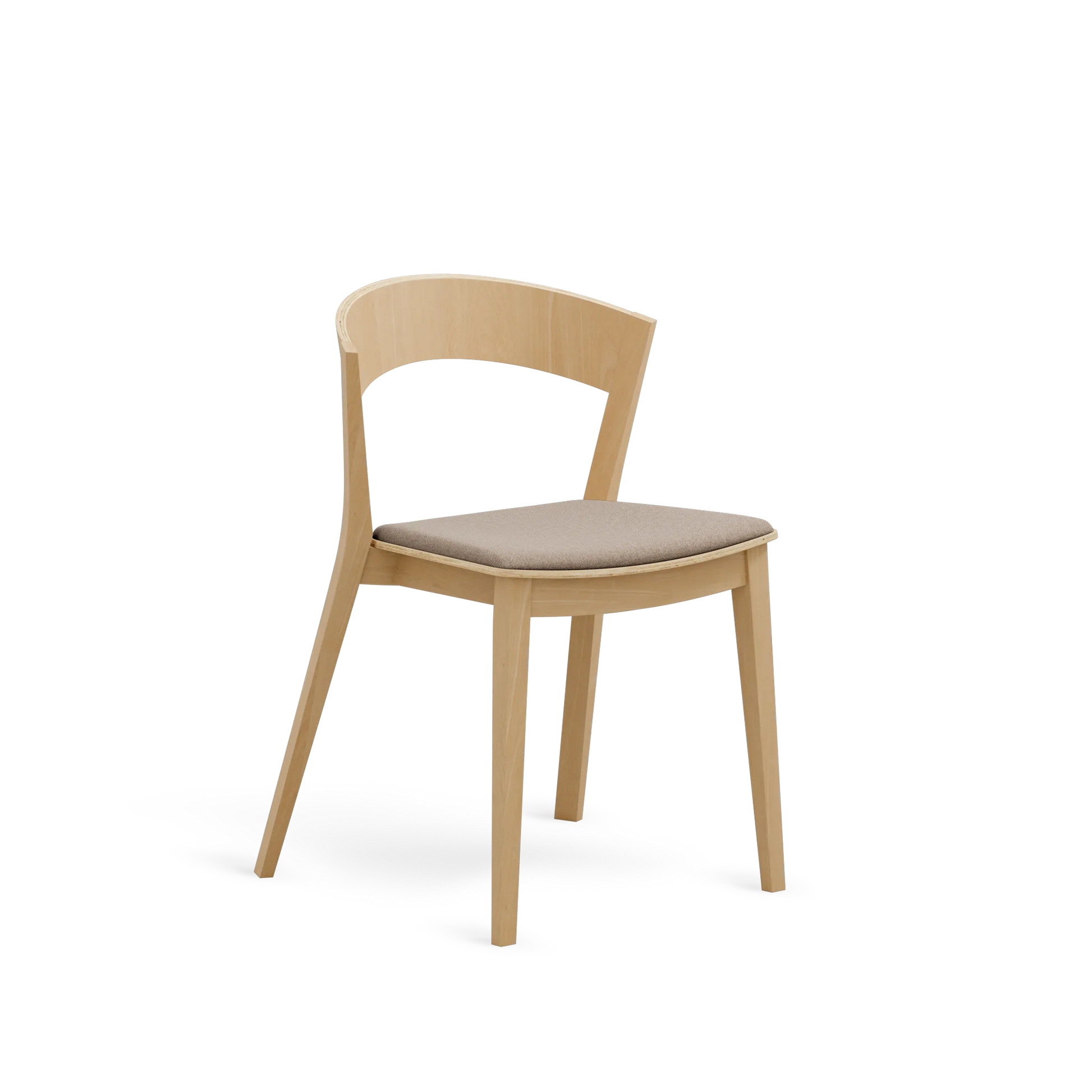 Miękkie siedzisko zwiększa wygodę siedzenia, nie zaburzając przy tym charakterystycznej formy mebla. Krzesło dostępne jest w drewnie bukowym lub dębowym, w kilku wybarwieniach i różnych tkaninach. Wybór wybarwienia i tapicerki pozwala dopasować mebel do różnych wnętrz – od domowych jadalni po eleganckie przestrzenie komercyjne.