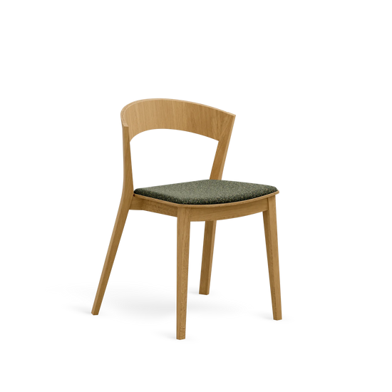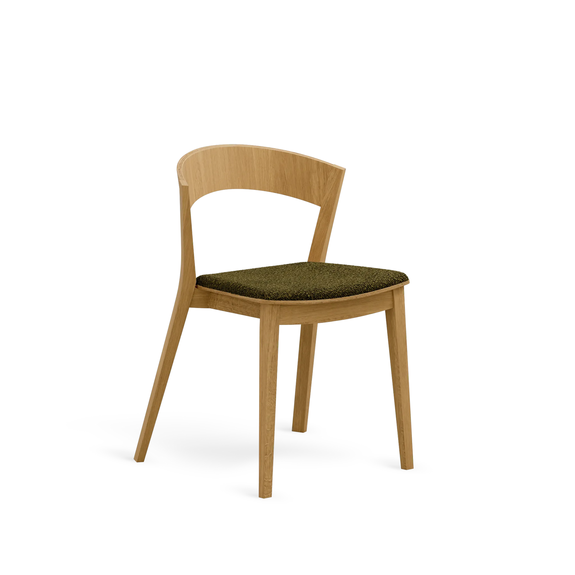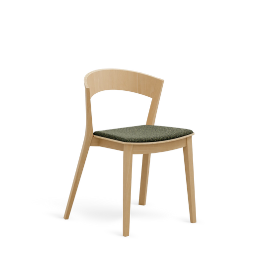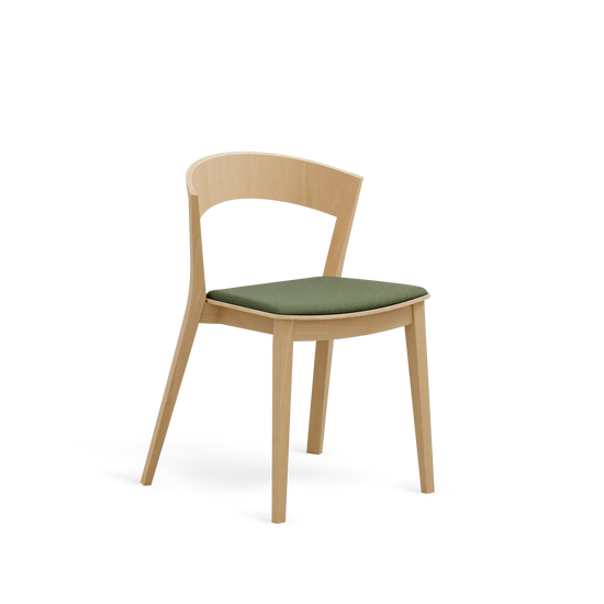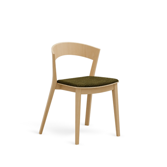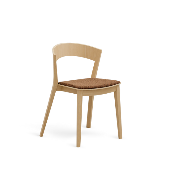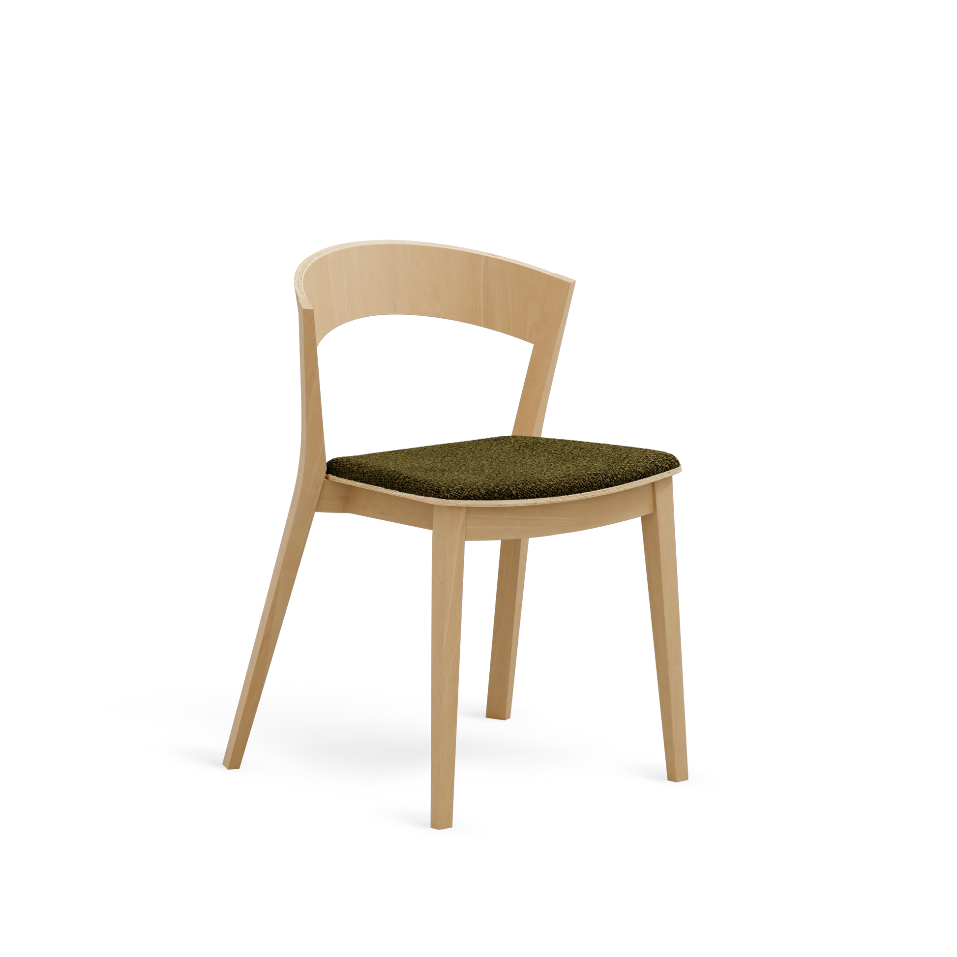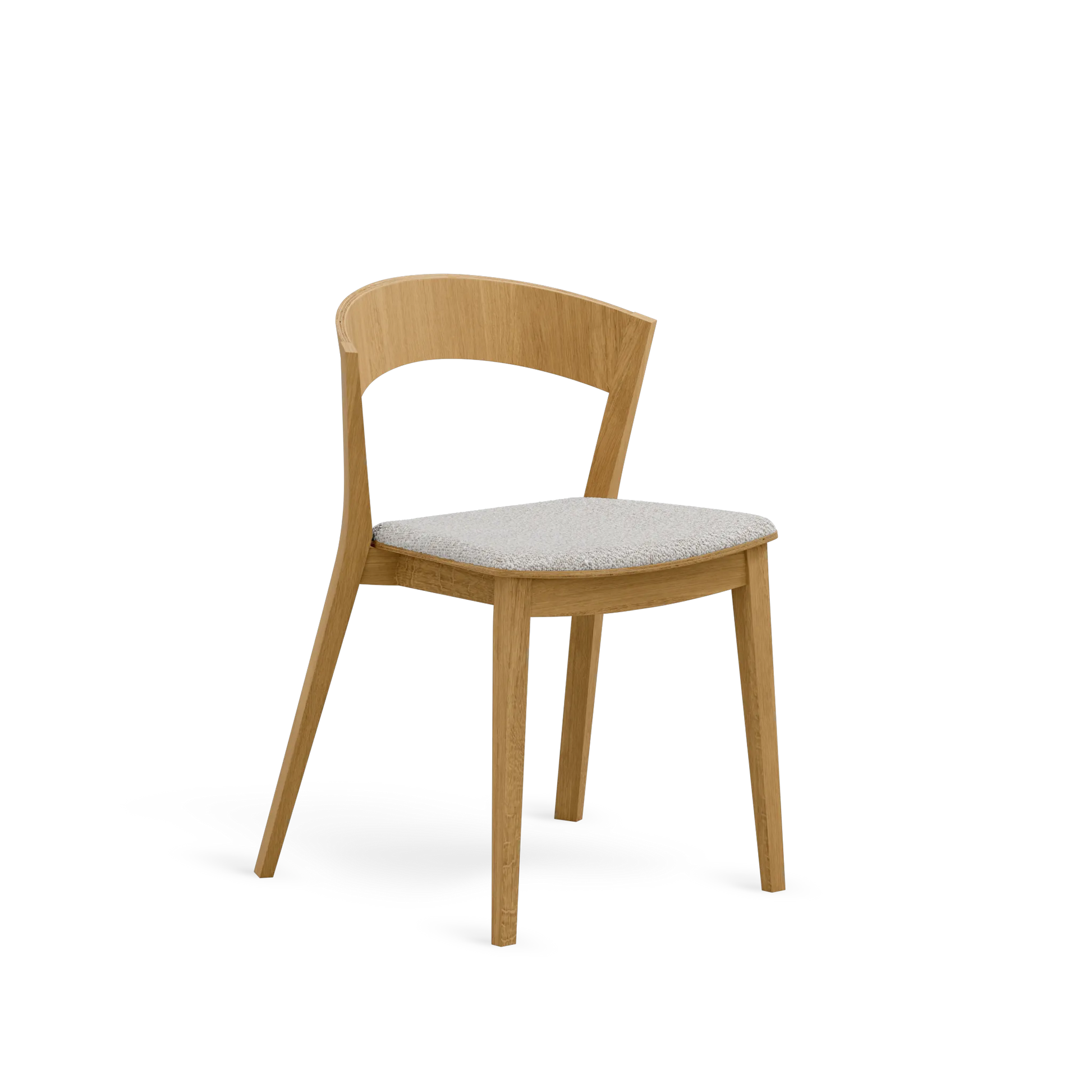 Miękkie siedzisko zwiększa wygodę siedzenia, nie zaburzając przy tym charakterystycznej formy mebla. Krzesło dostępne jest w drewnie bukowym lub dębowym, w kilku wybarwieniach i różnych tkaninach. Wybór wybarwienia i tapicerki pozwala dopasować mebel do różnych wnętrz – od domowych jadalni po eleganckie przestrzenie komercyjne.