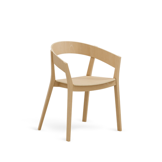 Krzesło Archer B-4800 w wersji w pełni drewnianej, z podłokietnikami wyraźnie nawiązuje do zawartego w nazwie łuku. Wyprofilowane oparcie płynnie przechodzi w podłokietniki, tworząc zwartą, wyrazistą sylwetkę. Proste przednie nogi kontastują z tylnymi, charakterystycznie wygiętymi i napiętymi niczym łuk. To propozycja do wnętrz, w których ważny jest wyrazisty detal i piękno naturalnego materiału.
