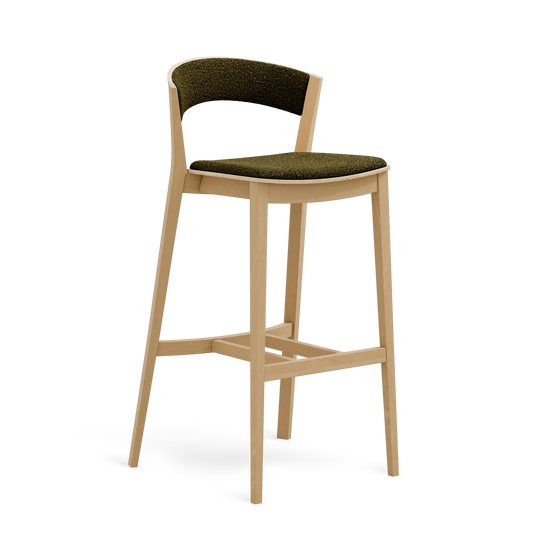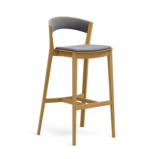 - hokery dostępne w dwóch wysokościach oraz trzech wersjach wykończenia – w pełni drewnianej, z tapicerowanym siedziskiem lub w całości tapicerowane.