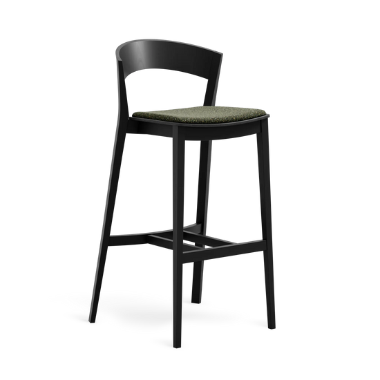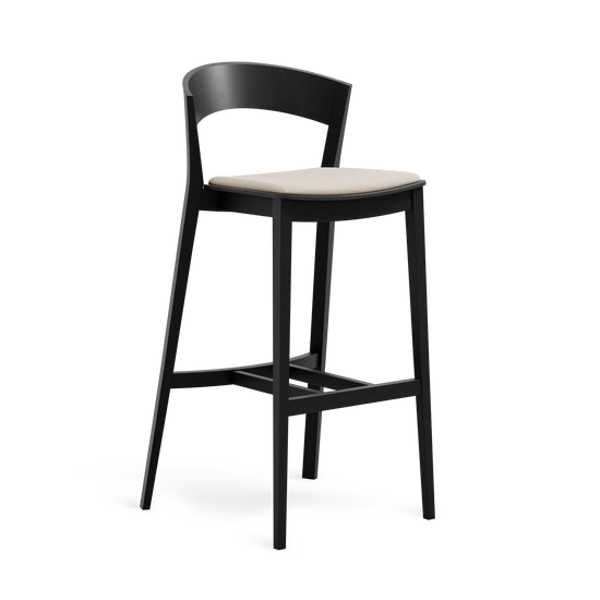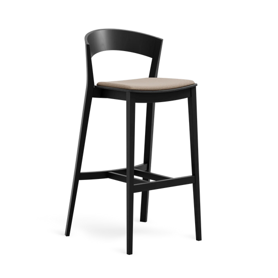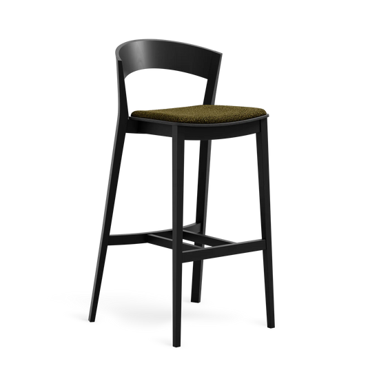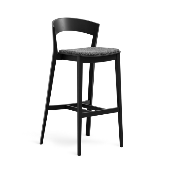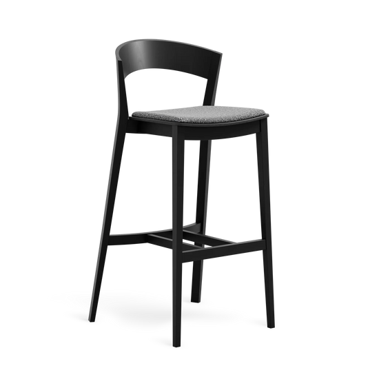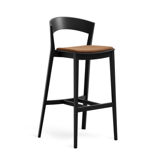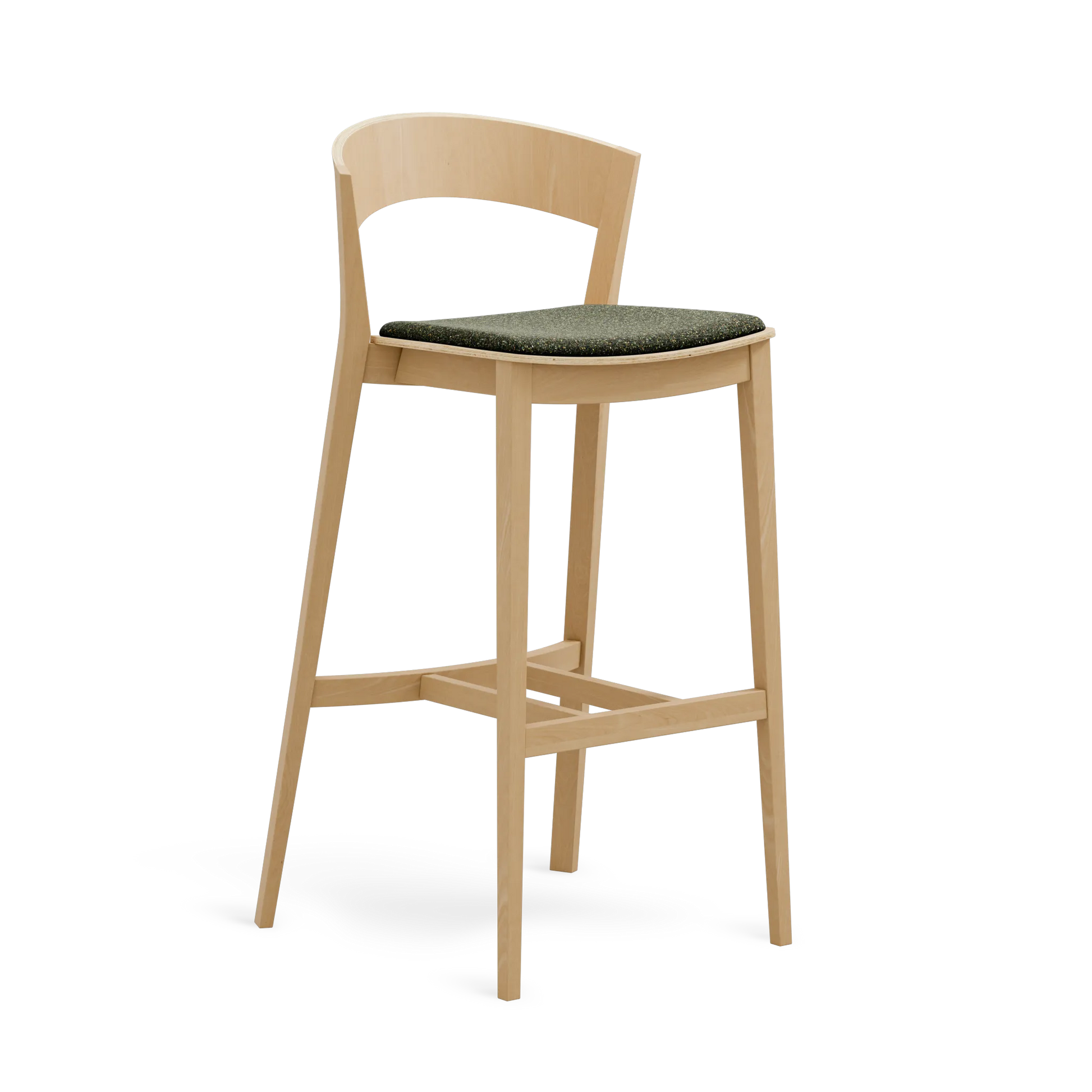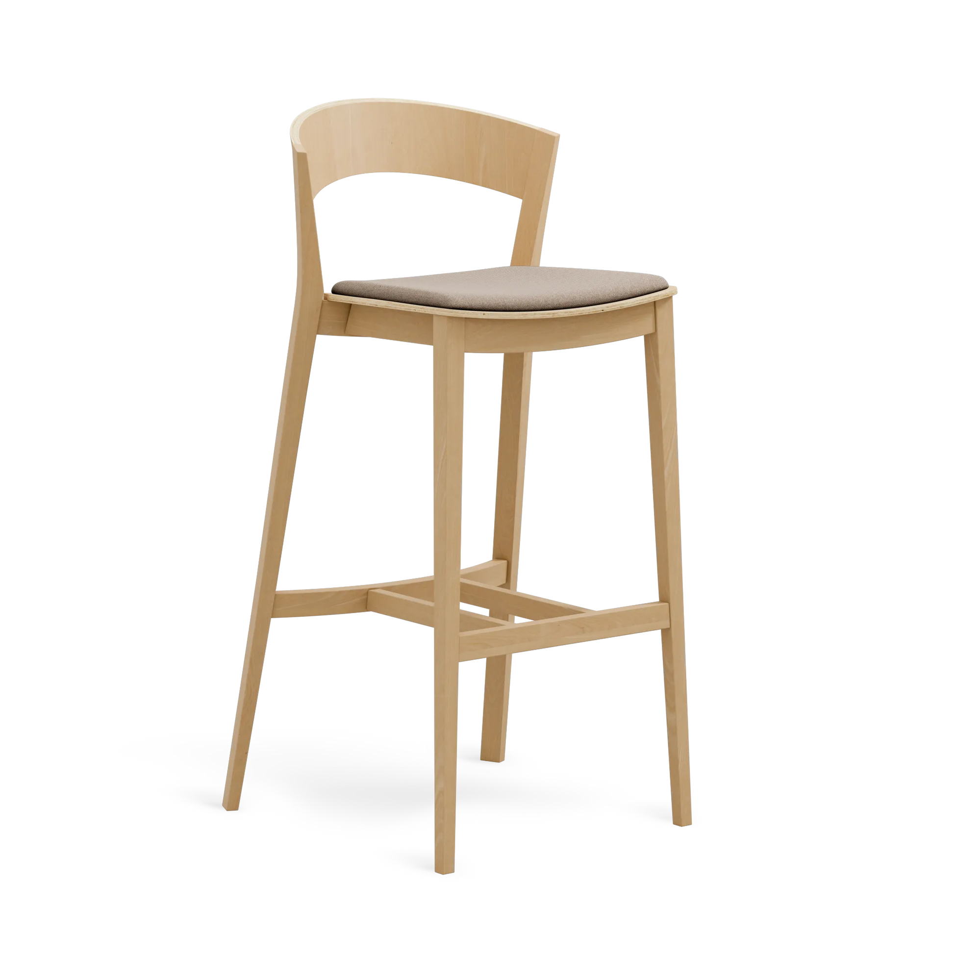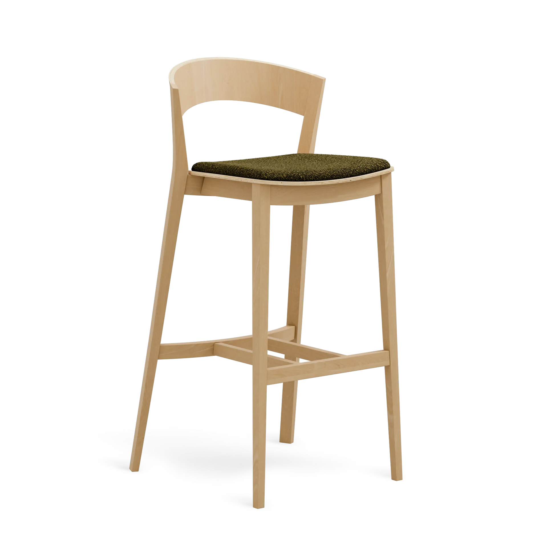 Hoker jest wykonany z litego drewna, z tapicerowanym siedziskiem – do wyboru w wersji bukowej lub dębowej, w różnych wybarwieniach i tkaninach. Miękkie siedzisko i ergonomiczne oparcie zapewniają wygodę, nawet podczas dłuższego użytkowania.