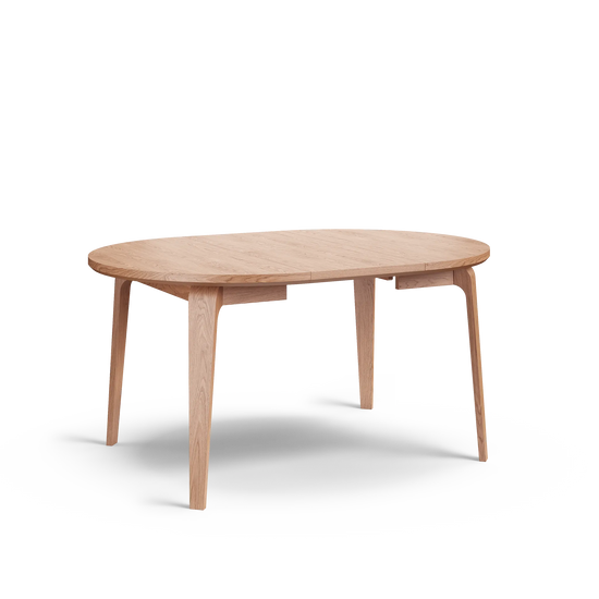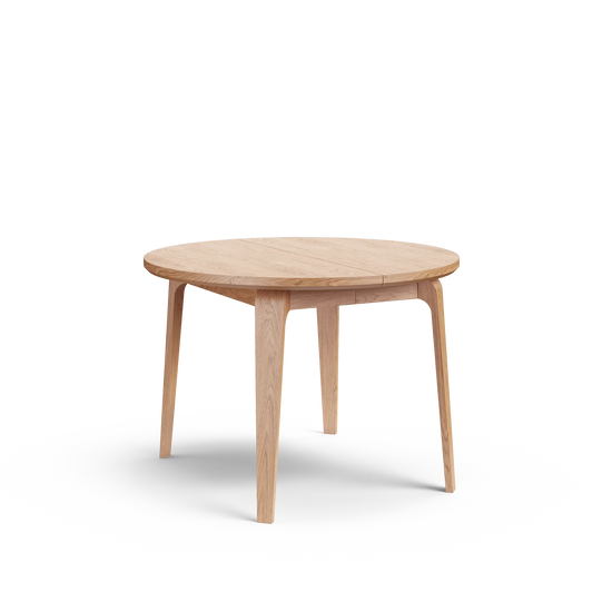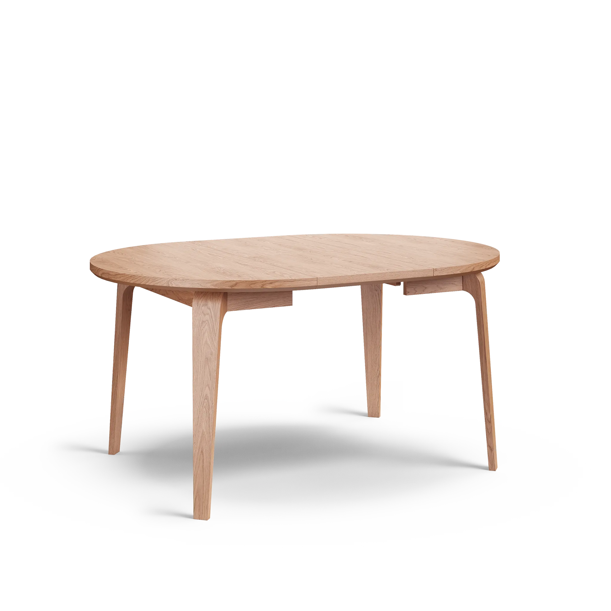 Argo to kompaktowy okrągły stół z funkcją rozkładania. Przyciąga uwagę wyrazistymi detalami: wygiętymi pod blatem nogami oraz prosto ściętymi krawędziami blatu i nóg. Wykonany z litego drewna dębowego, z płaską powierzchnią blatu, która uwydatnia piękno naturalnego rysunku drewna.