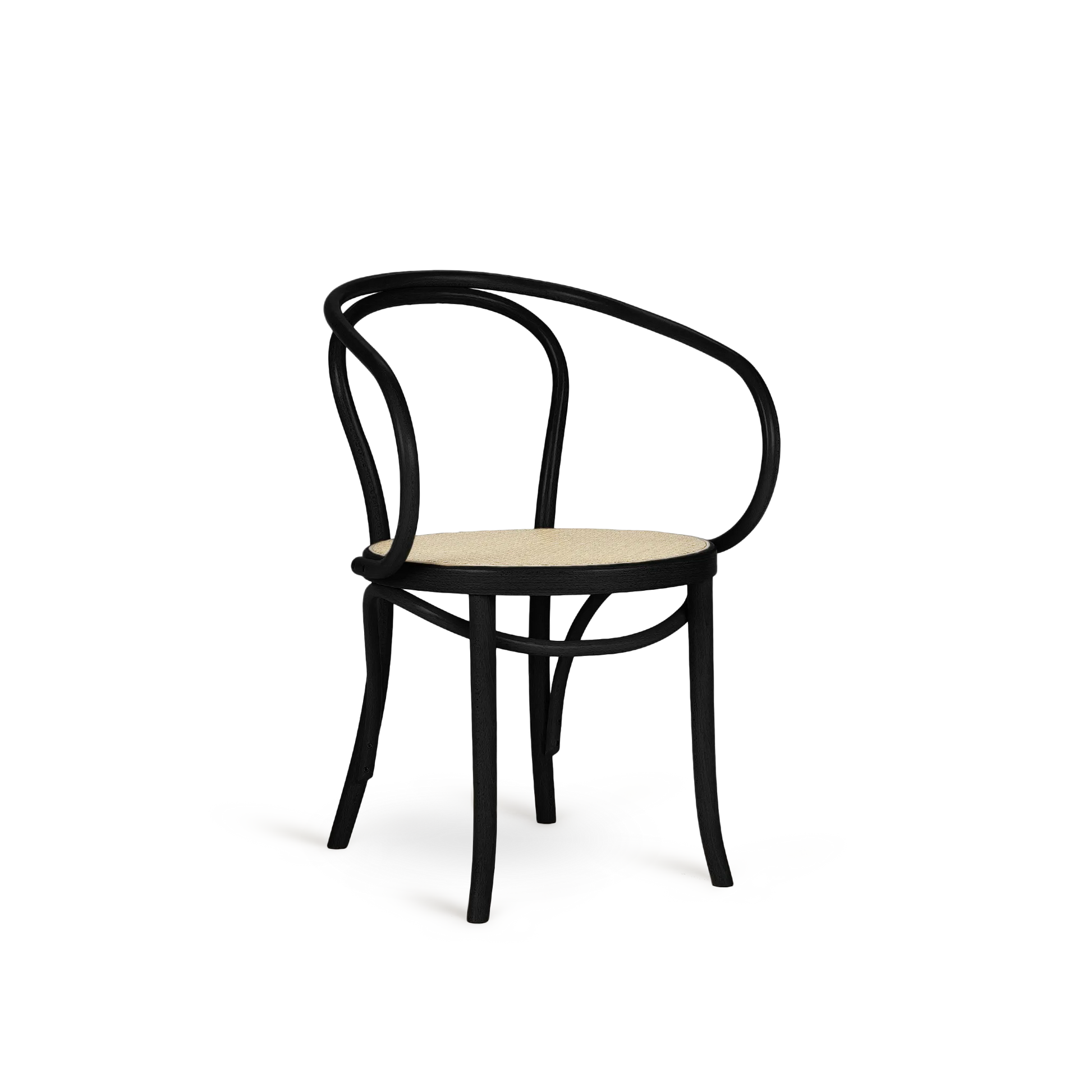 Model Classic B-1840 to wariant słynnego krzesła Thoneta, wzbogacony o delikatnie wygięte podłokietniki, które płynnie łączą się z konstrukcją oparcia. Wersja z siedziskiem z naturalnej maty zachowuje lekkość i ponadczasowy charakter pierwowzoru. Plecionka została od spodu wzmocniona przezroczystą siatką, co zwiększa jej trwałość i odporność na codzienne użytkowanie.