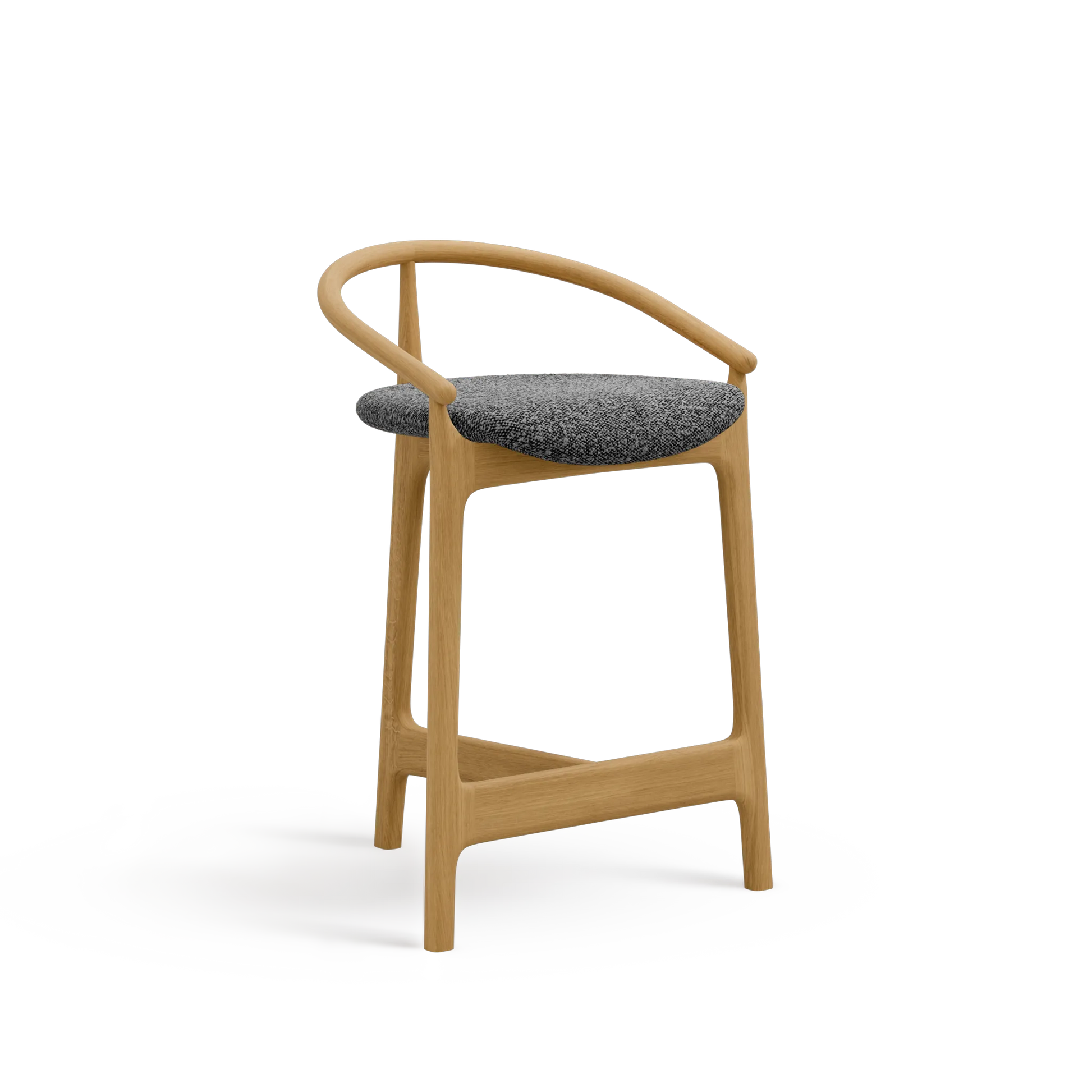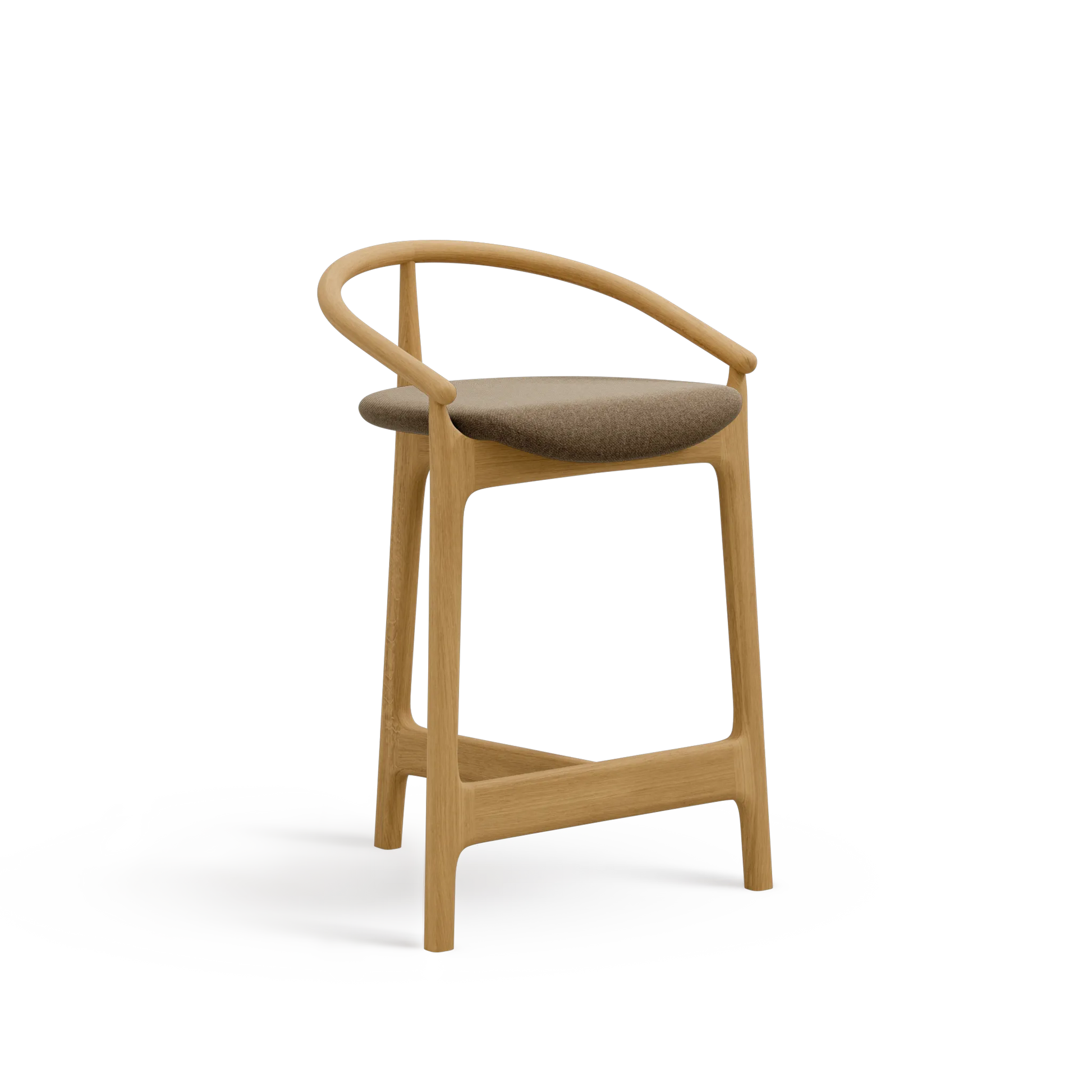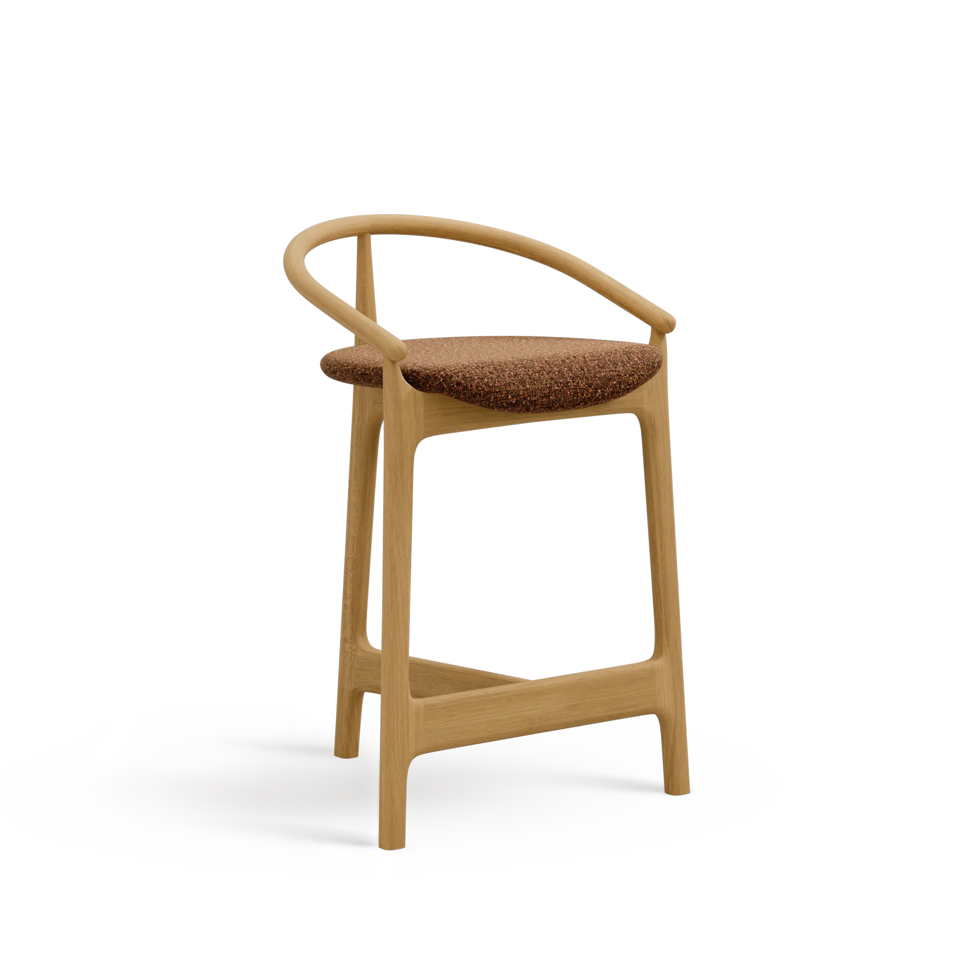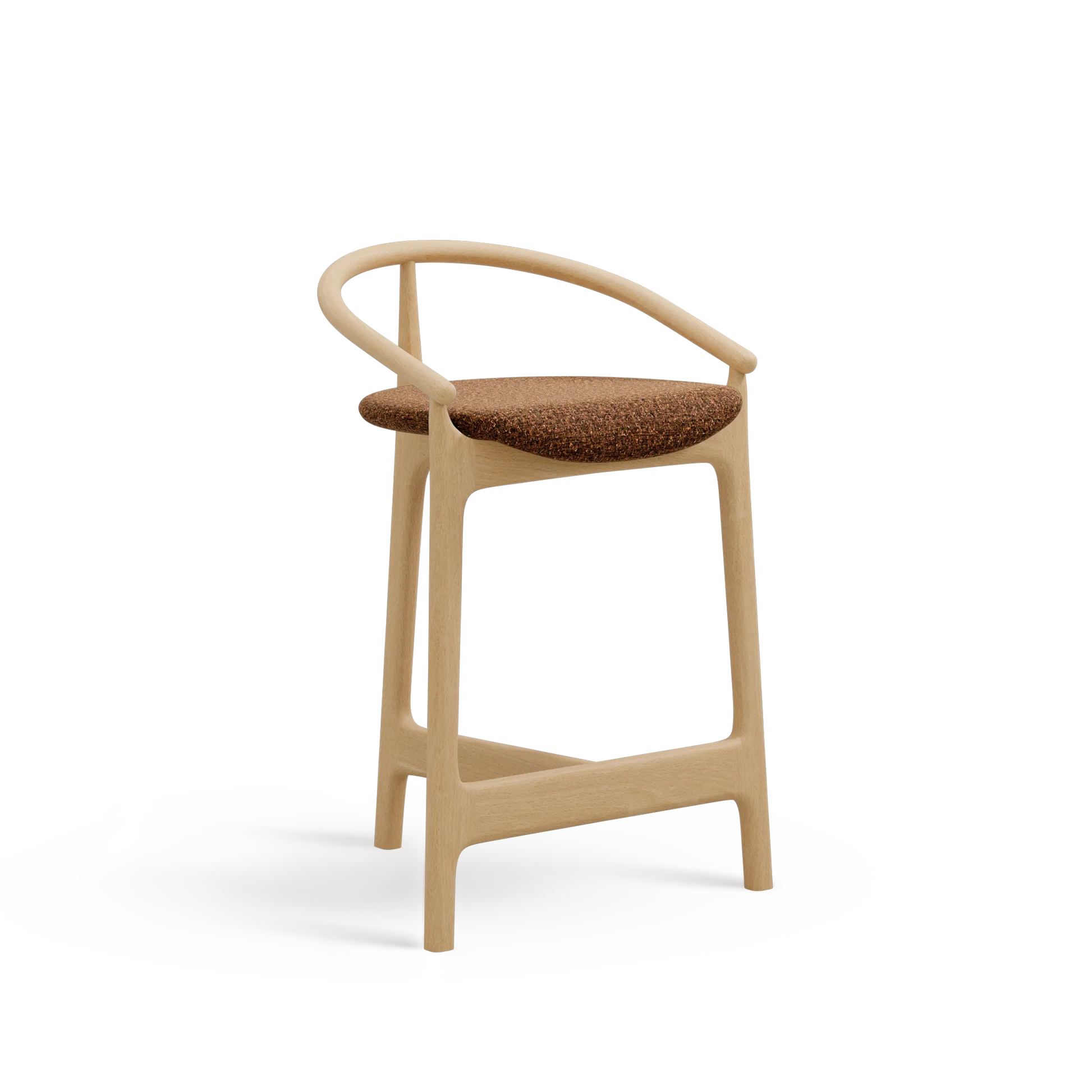Lekka, subtelna linia oparcia i charakterystyczna dla rodziny Evo forma na podwyższonej podstawie, zyskuje nowy, dynamiczny wygląd. Tapicerowane siedzisko zwiększa komfort użytkowania i dodaje wizualnej miękkości. Wysokość siedziska 68 cm jest przeznaczona do użytku przy standardowych wyspach kuchennych. Możliwość wyboru wybarwienia drewna i rodzaju tkaniny pozwala dopasować hoker do projektowanego wnętrza.