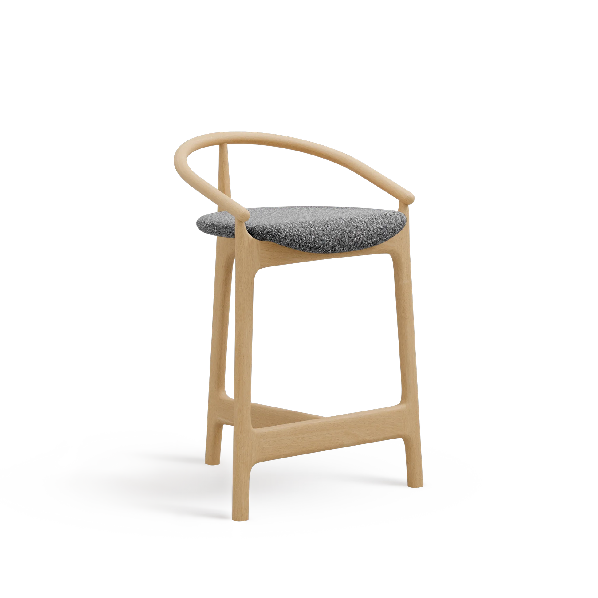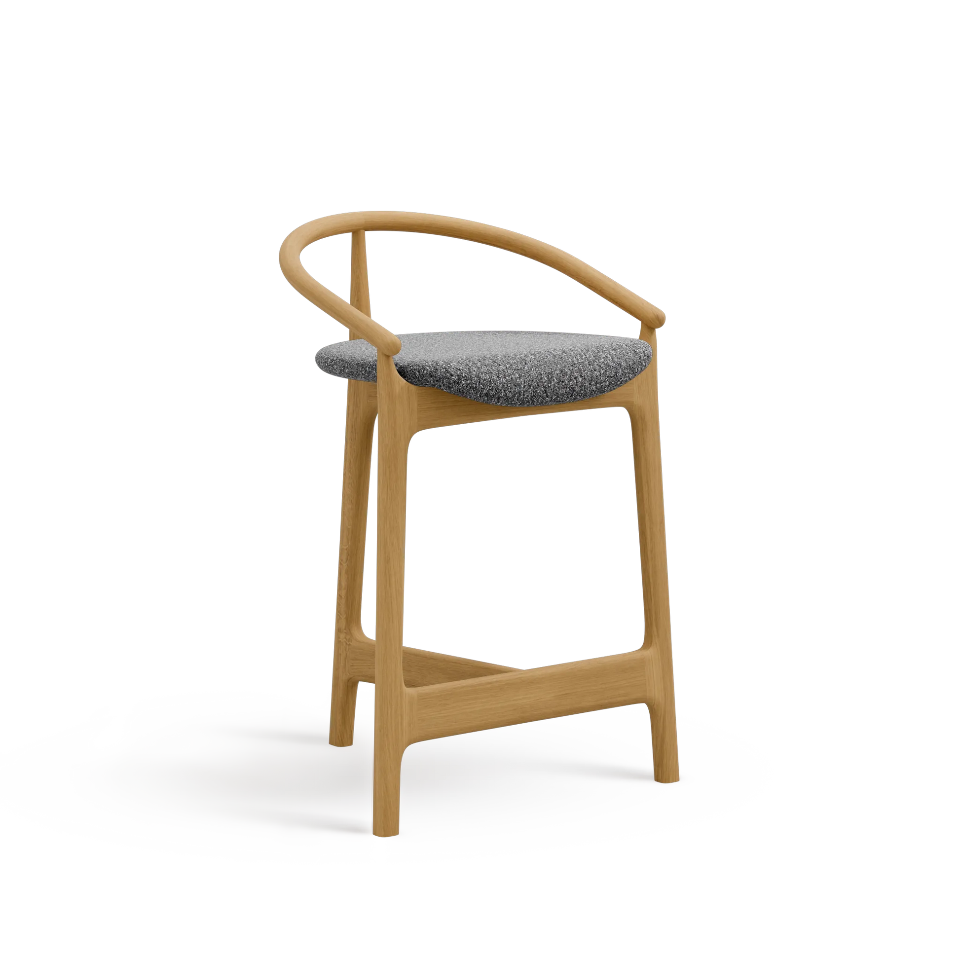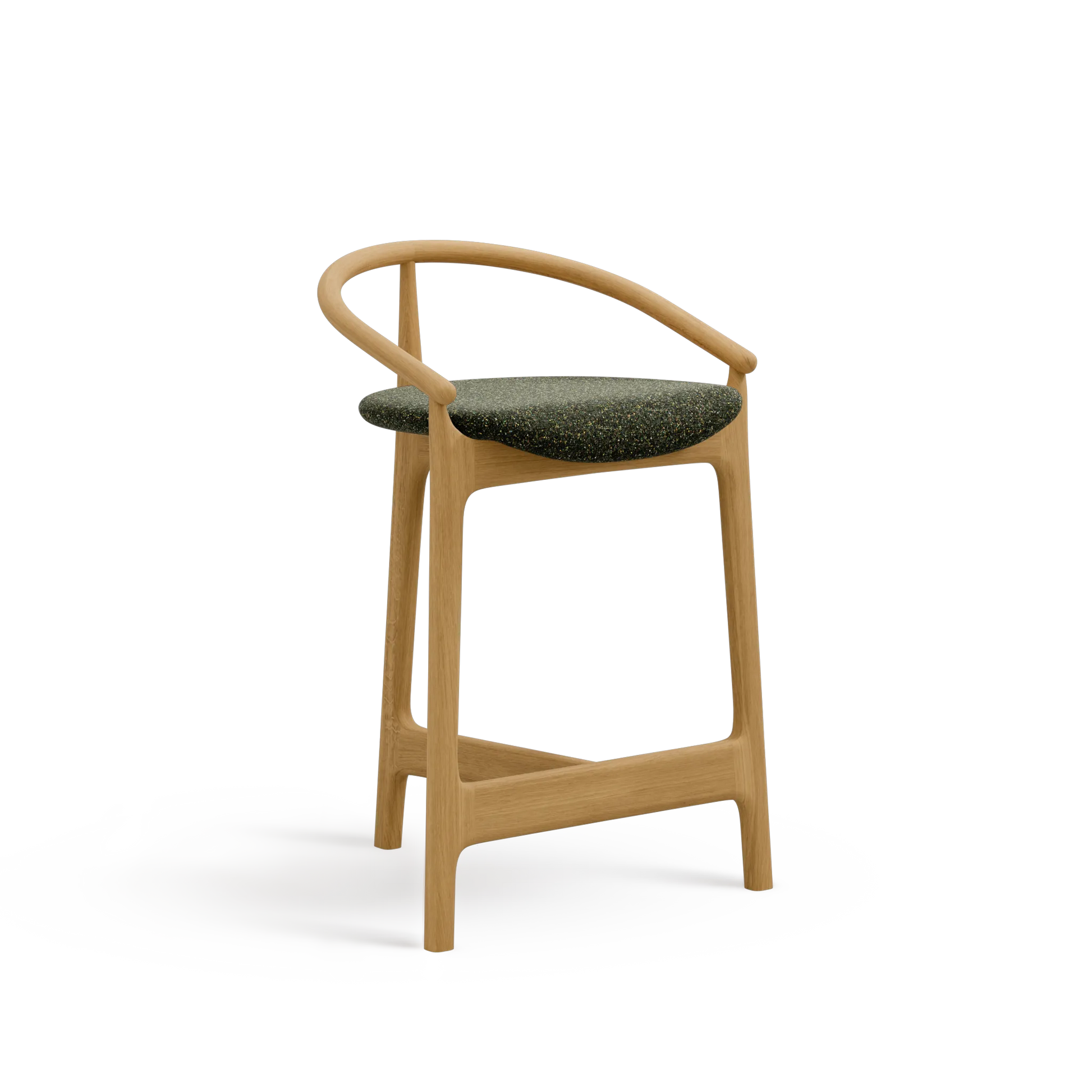 Lekka, subtelna linia oparcia i charakterystyczna dla rodziny Evo forma na podwyższonej podstawie, zyskuje nowy, dynamiczny wygląd. Tapicerowane siedzisko zwiększa komfort użytkowania i dodaje wizualnej miękkości. Wysokość siedziska 68 cm jest przeznaczona do użytku przy standardowych wyspach kuchennych. Możliwość wyboru wybarwienia drewna i rodzaju tkaniny pozwala dopasować hoker do projektowanego wnętrza.