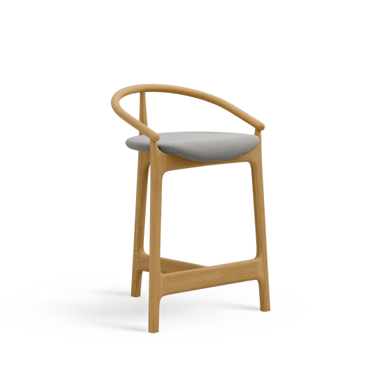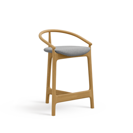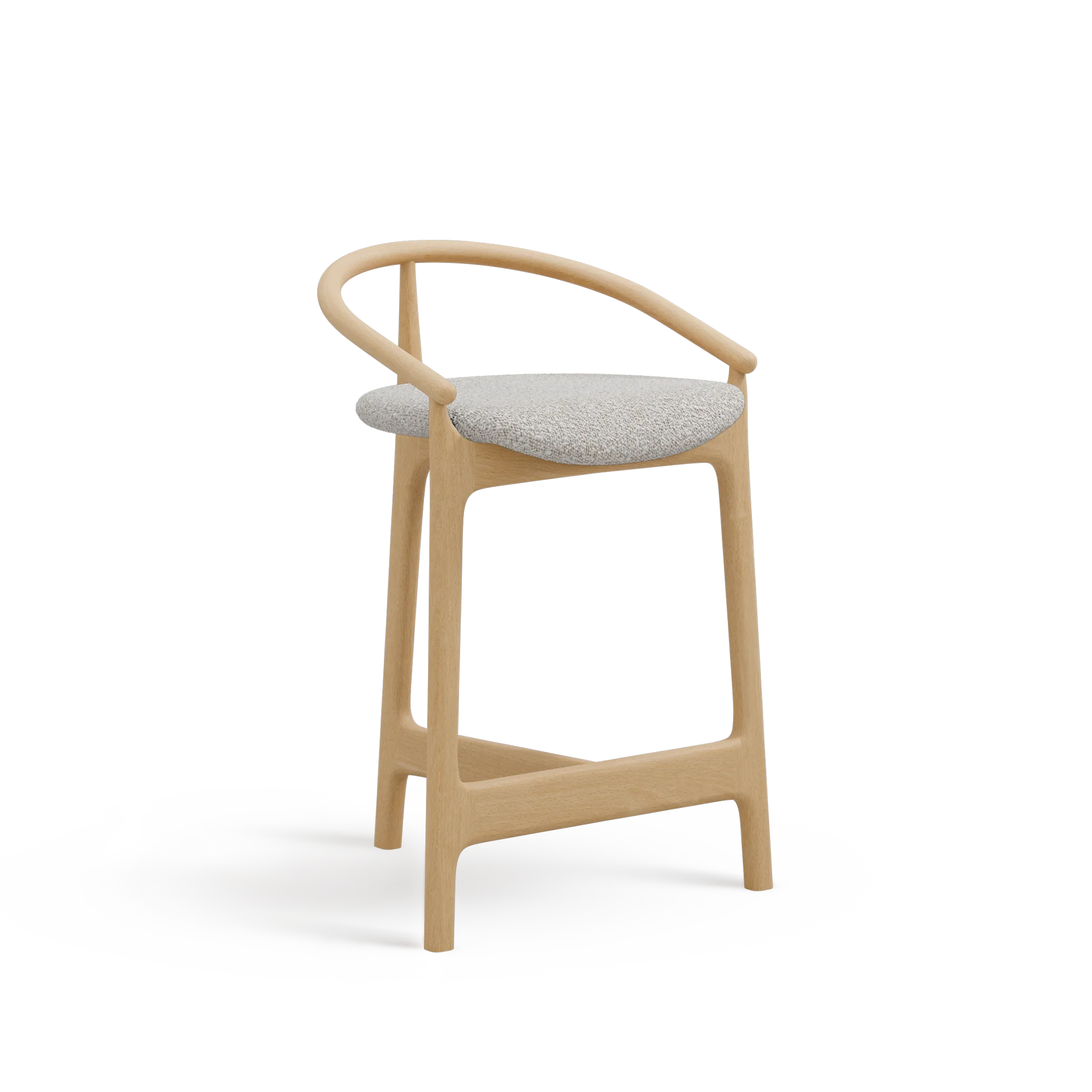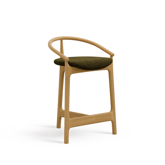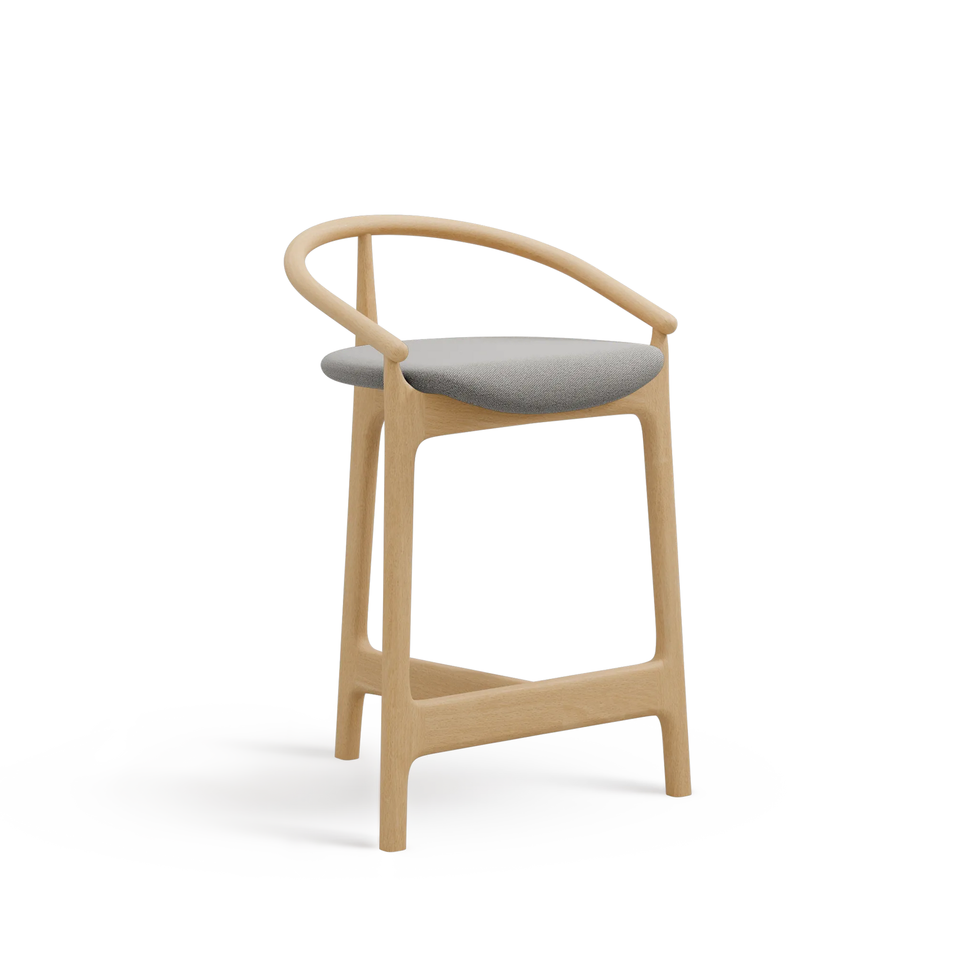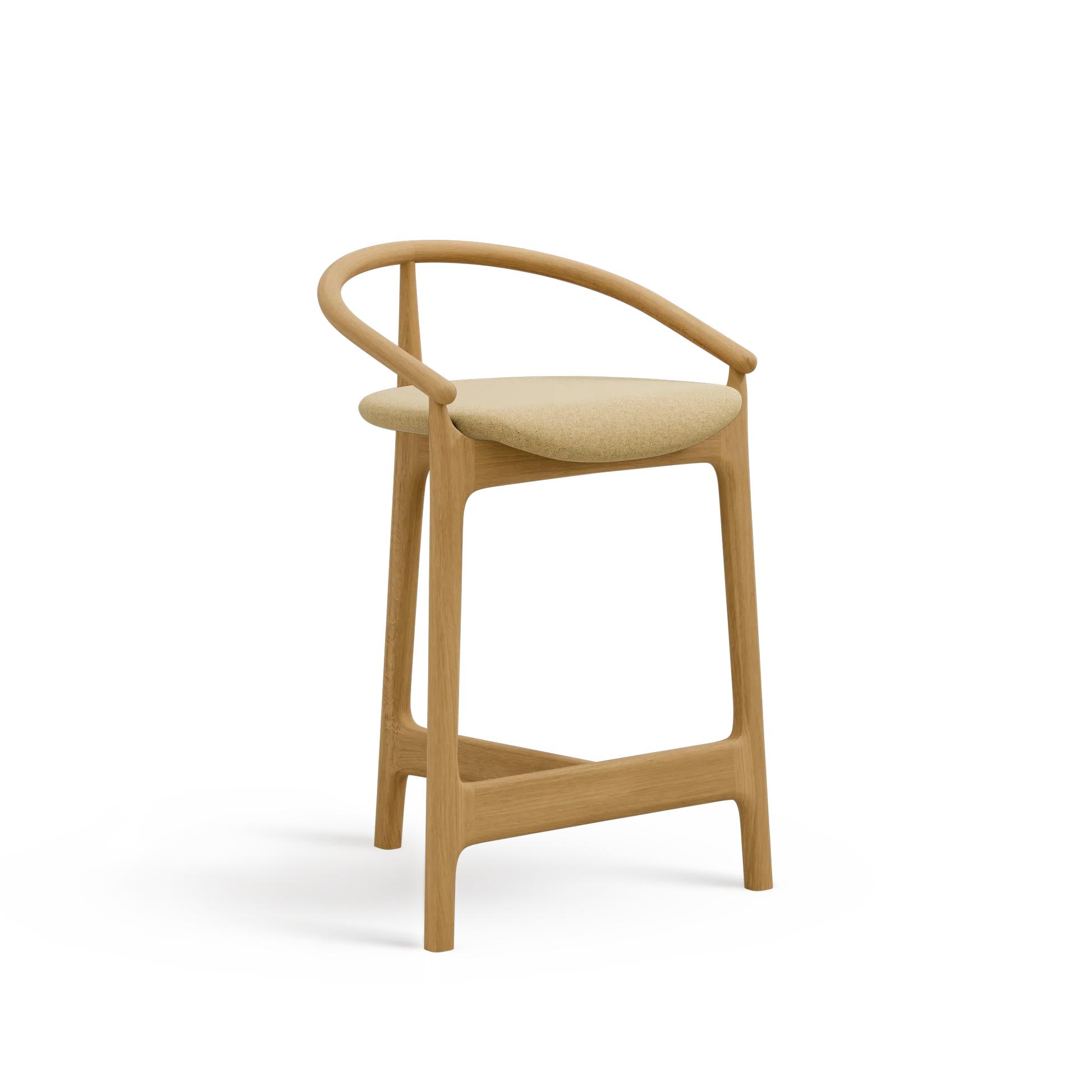 Lekka, subtelna linia oparcia i charakterystyczna dla rodziny Evo forma na podwyższonej podstawie, zyskuje nowy, dynamiczny wygląd. Tapicerowane siedzisko zwiększa komfort użytkowania i dodaje wizualnej miękkości. Wysokość siedziska 68 cm jest przeznaczona do użytku przy standardowych wyspach kuchennych. Możliwość wyboru wybarwienia drewna i rodzaju tkaniny pozwala dopasować hoker do projektowanego wnętrza.