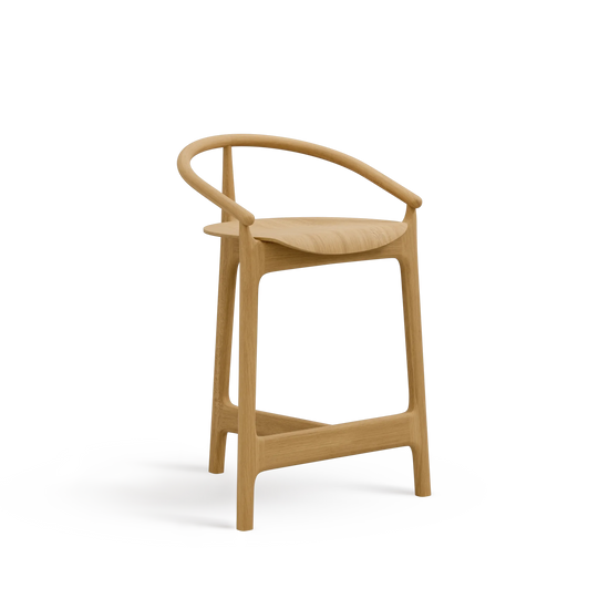 Lekka, subtelna linia oparcia i charakterystyczna dla rodziny Evo forma na podwyższonej podstawie, zyskuje nowy, dynamiczny wygląd. Wysokość siedziska 66 cm jest przeznaczona do użytku przy standardowych wyspach kuchennych. Możliwość wyboru wybarwienia drewna pozwala dopasować hoker do projektowanego wnętrza.