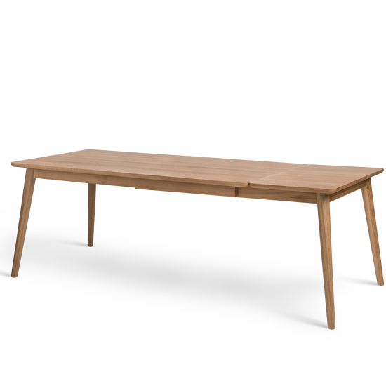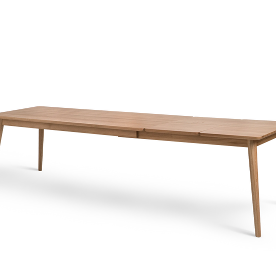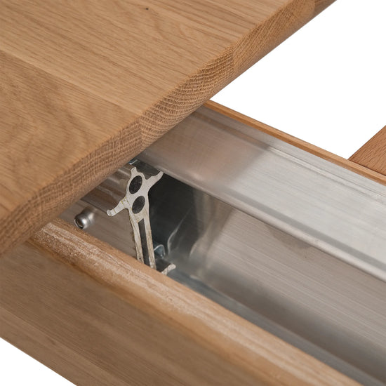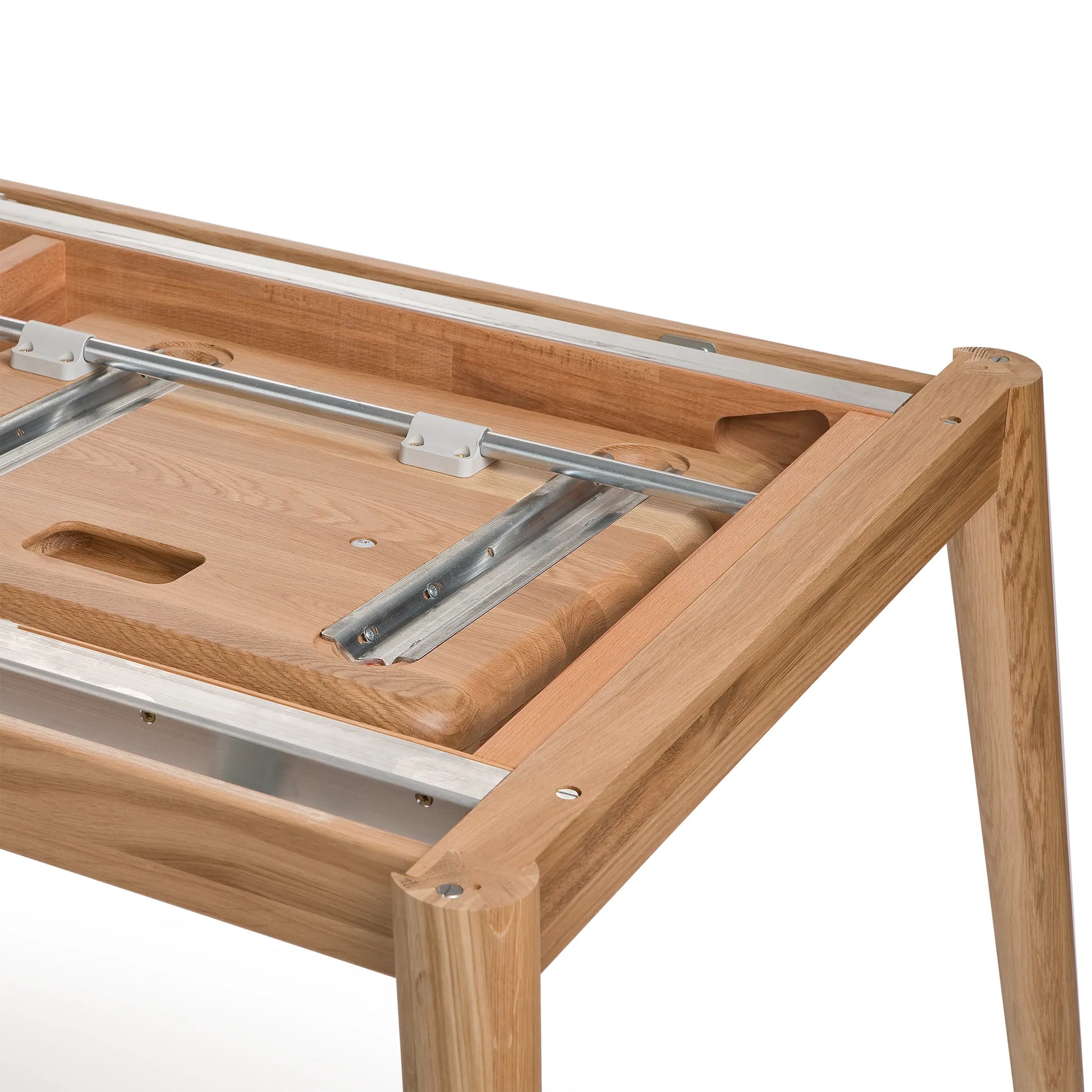 Lungo wyróżnia się niewidocznym systemem rozkładania, który nie wymaga dzielenia blatu. Wystarczy przesunąć cały blat w jedną stronę, aby odsłonić chowane wkładki w systemie butterfly. Pozwalają one wydłużyć stół do imponującej długości 260 cm i elastycznie dostosować jego długość do potrzeb użytkowników.