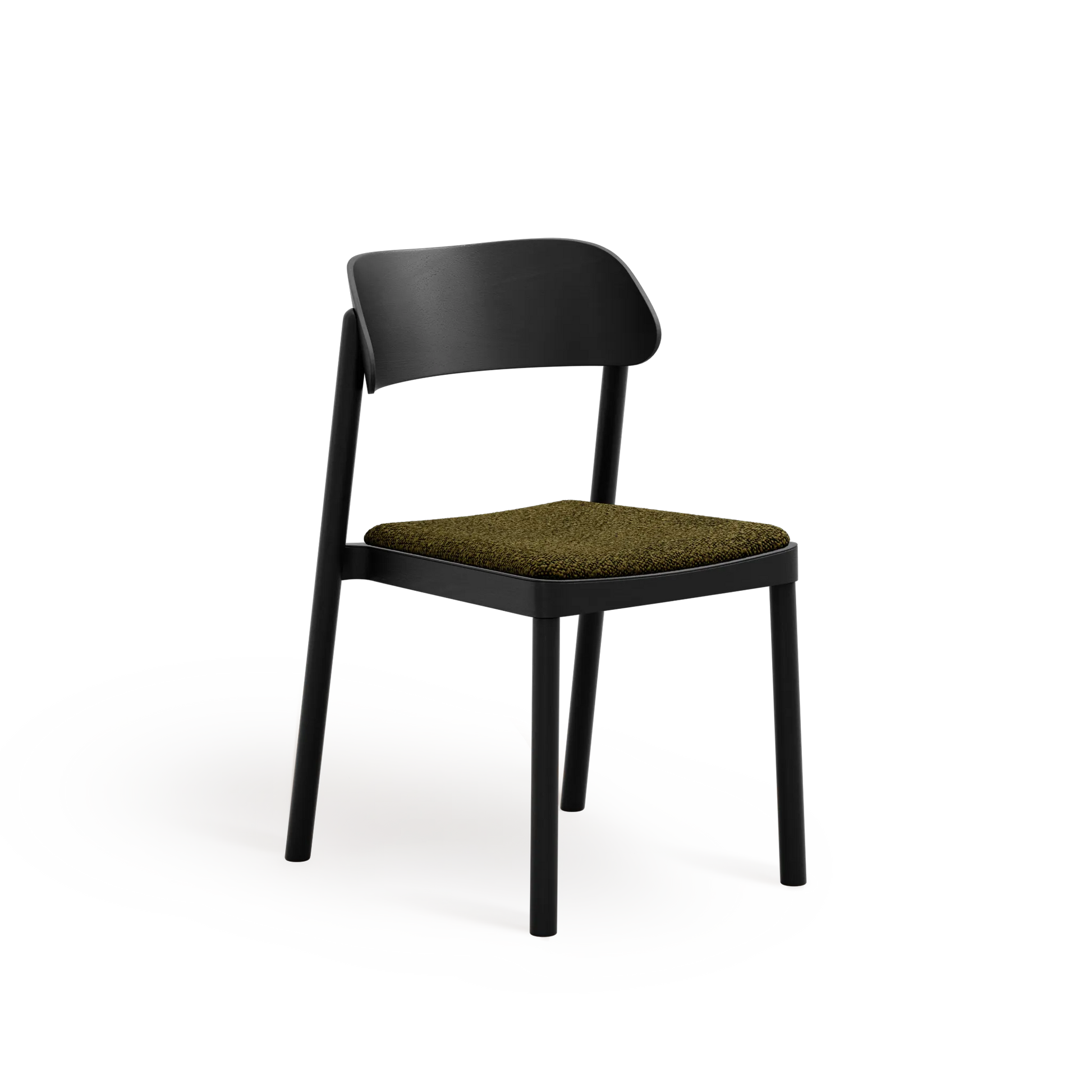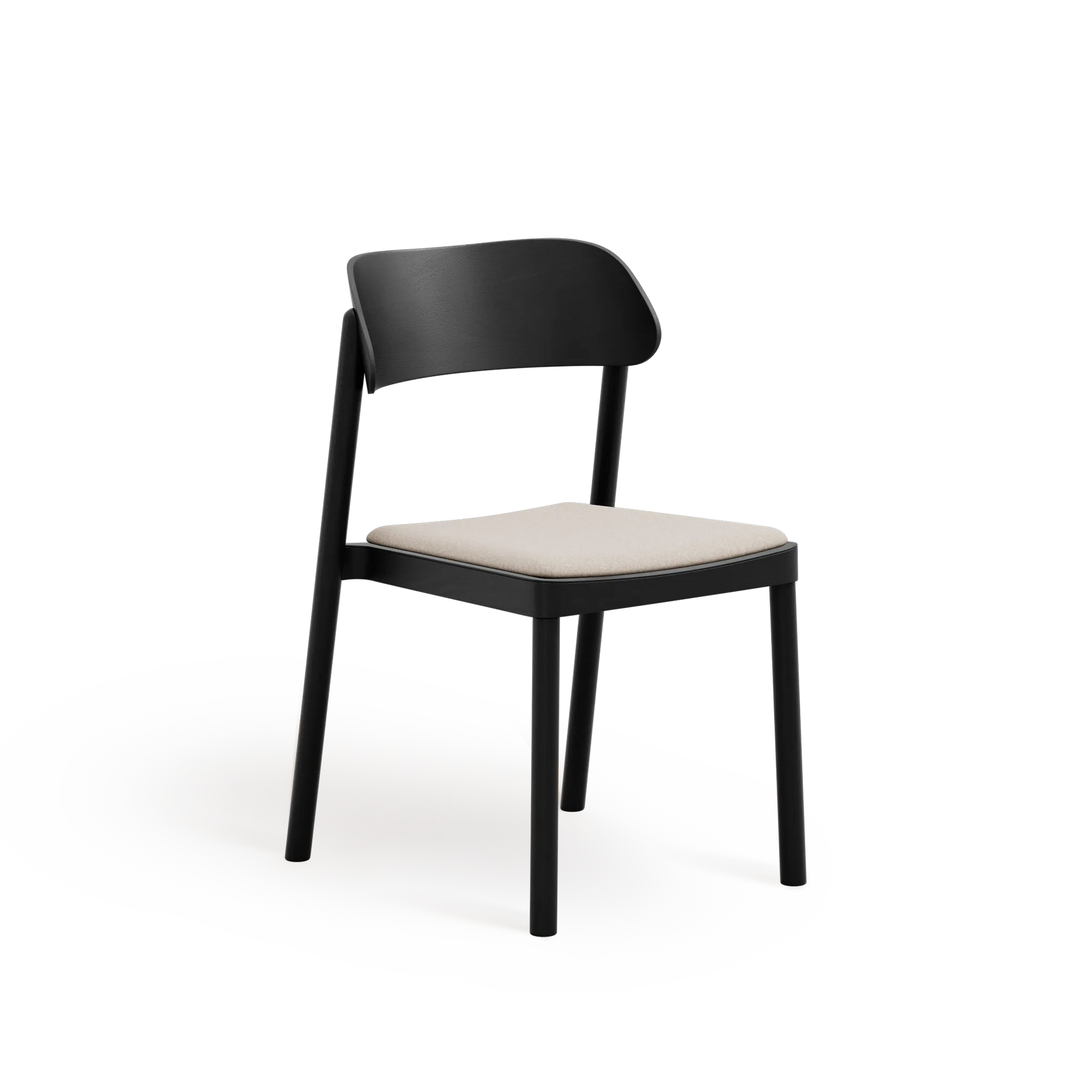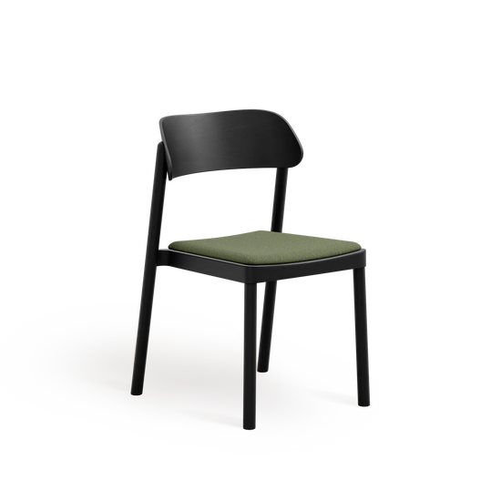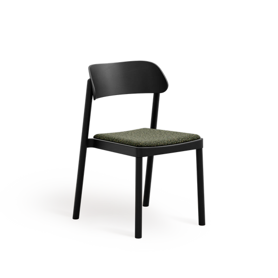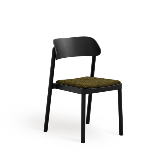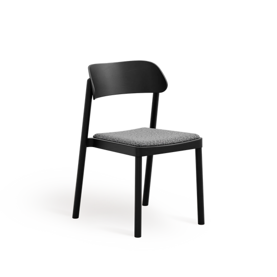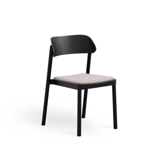 Subtelnie wyprofilowane oparcie oraz łagodnie zaokrąglone nogi nadają formie lekkości, przy jednoczesnym zachowaniu trwałości i stabilności. Wysokiej jakości tapicerka zwiększa komfort użytkowania, nie dominując nad minimalistycznym, ponadczasowym designem krzesła.