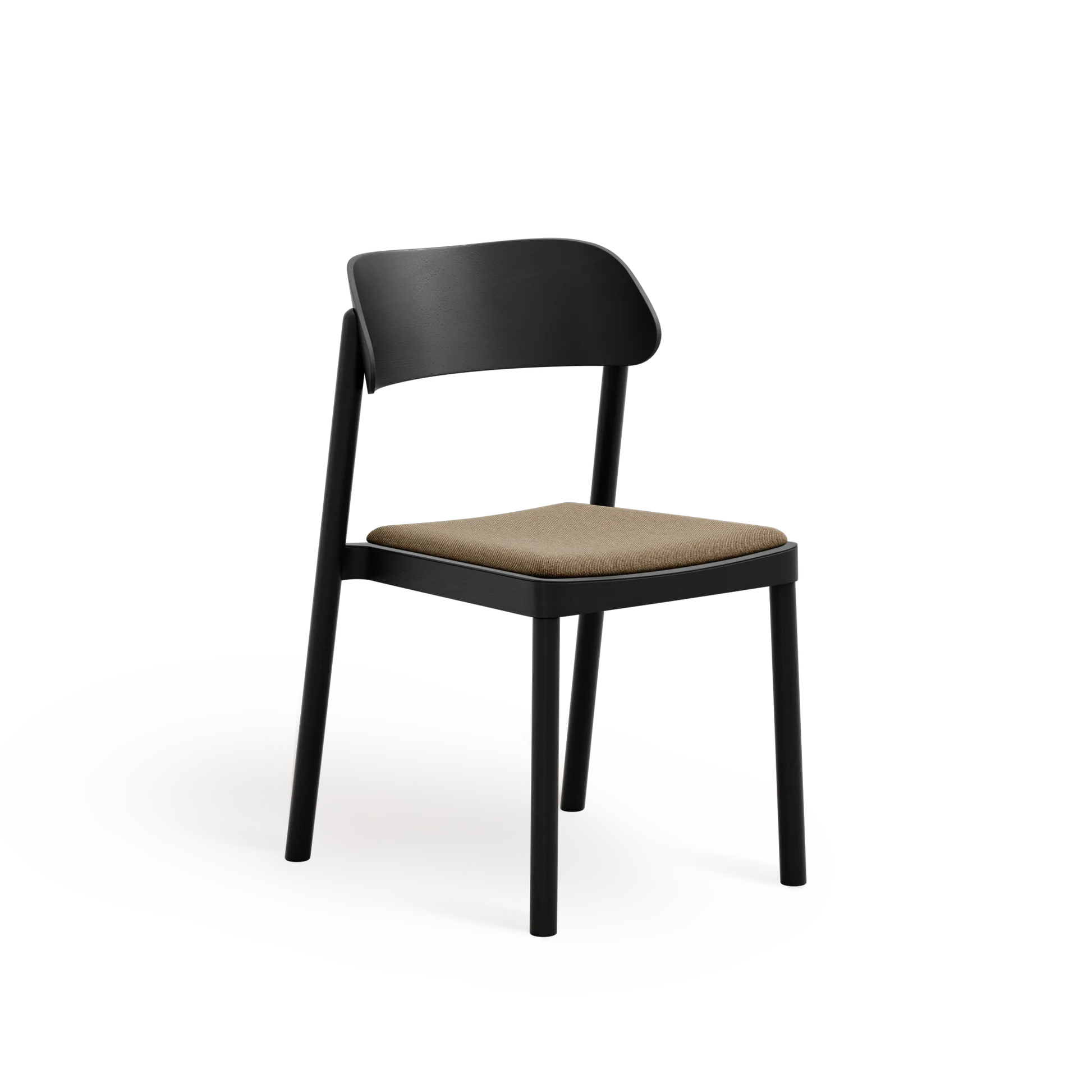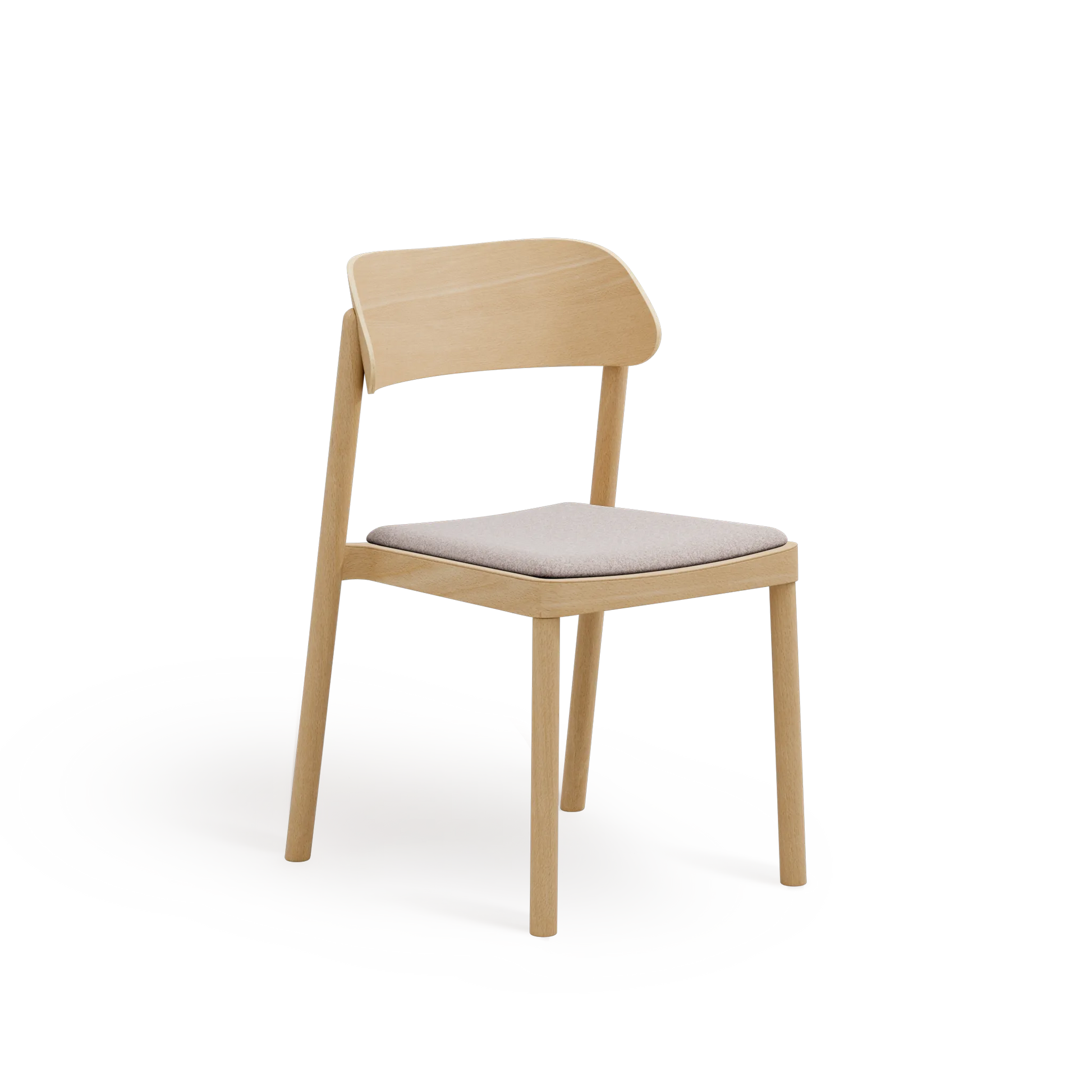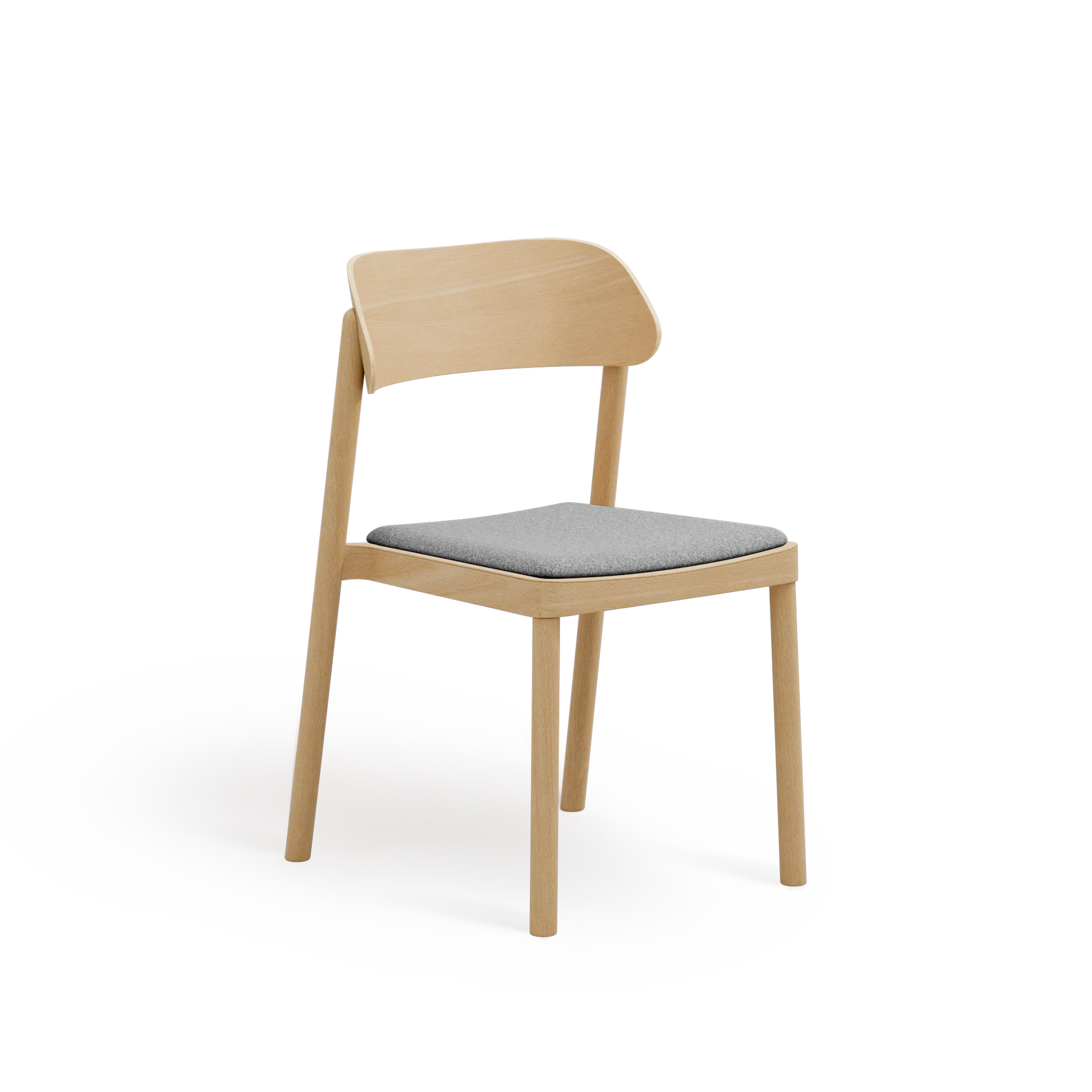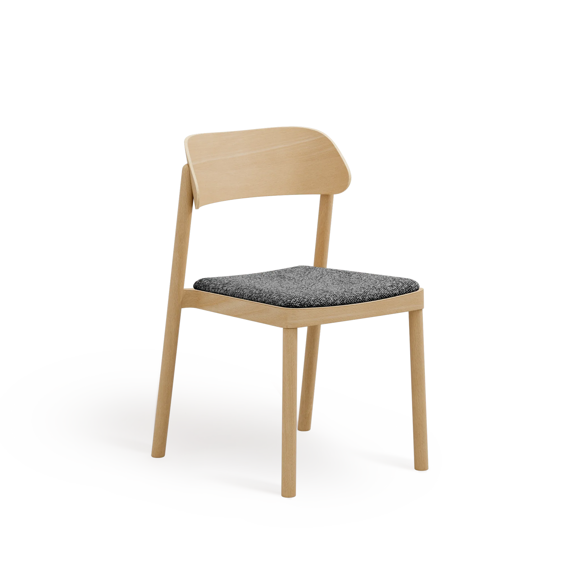 Subtelnie wyprofilowane oparcie oraz łagodnie zaokrąglone nogi nadają formie lekkości, przy jednoczesnym zachowaniu trwałości i stabilności. Wysokiej jakości tapicerka zwiększa komfort użytkowania, nie dominując nad minimalistycznym, ponadczasowym designem krzesła.