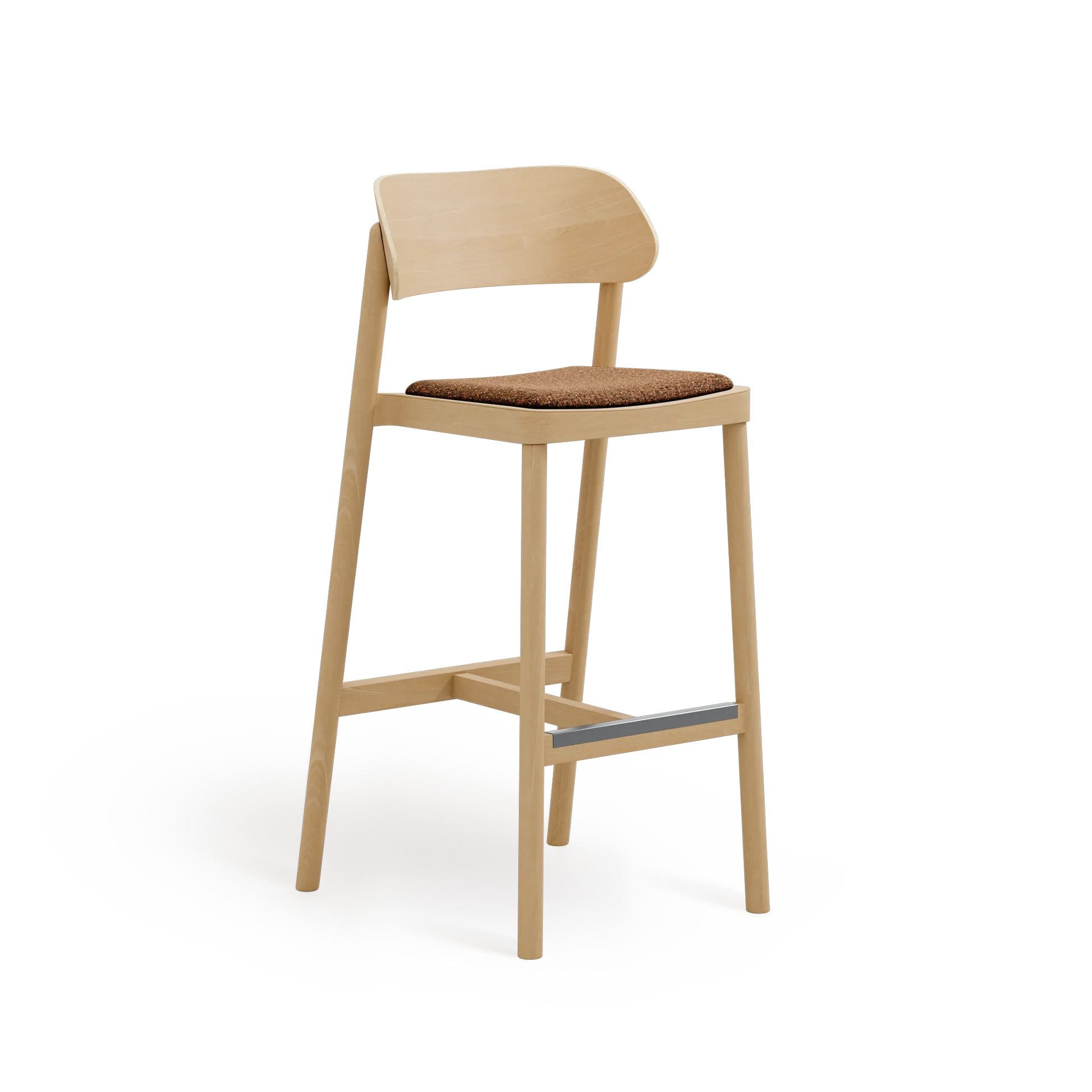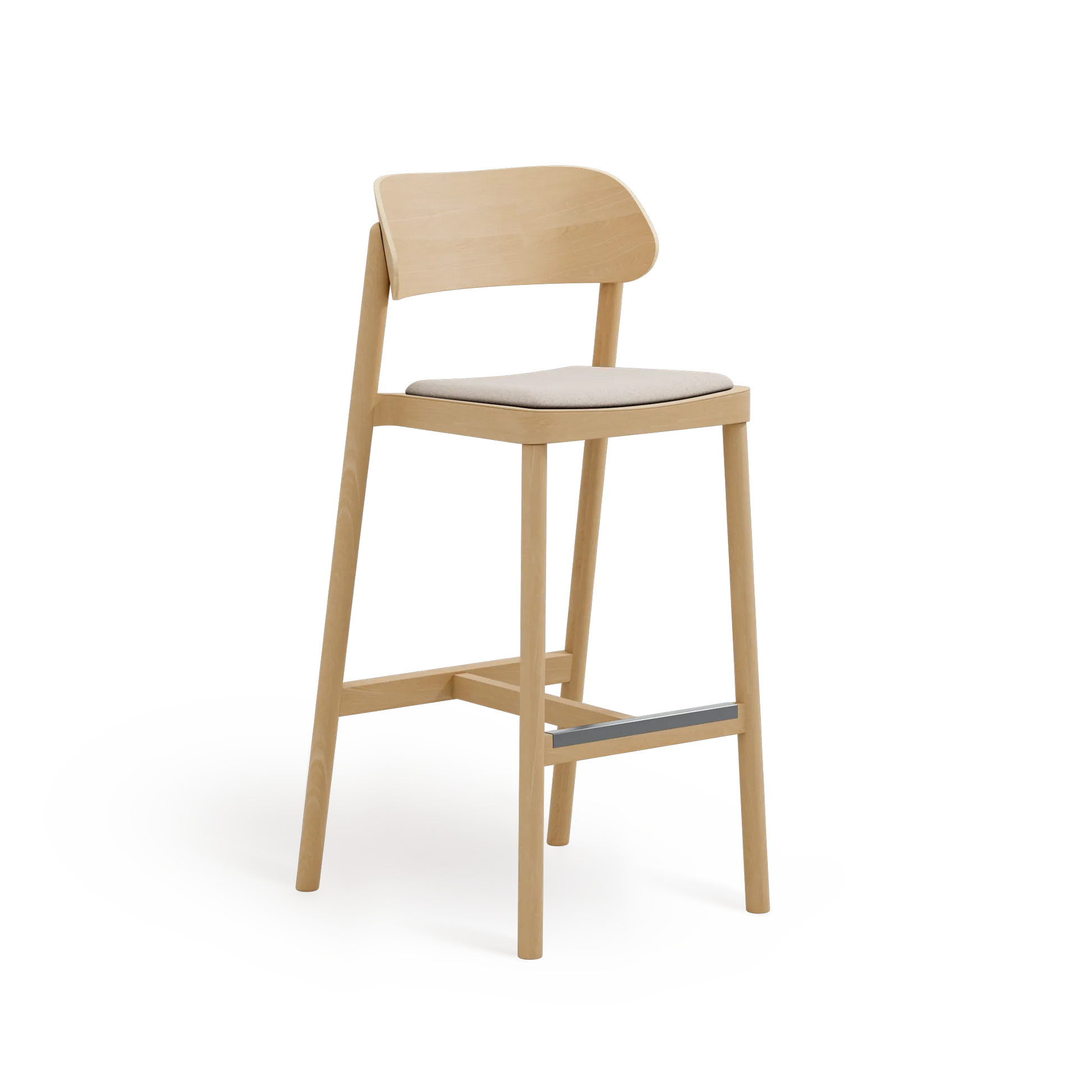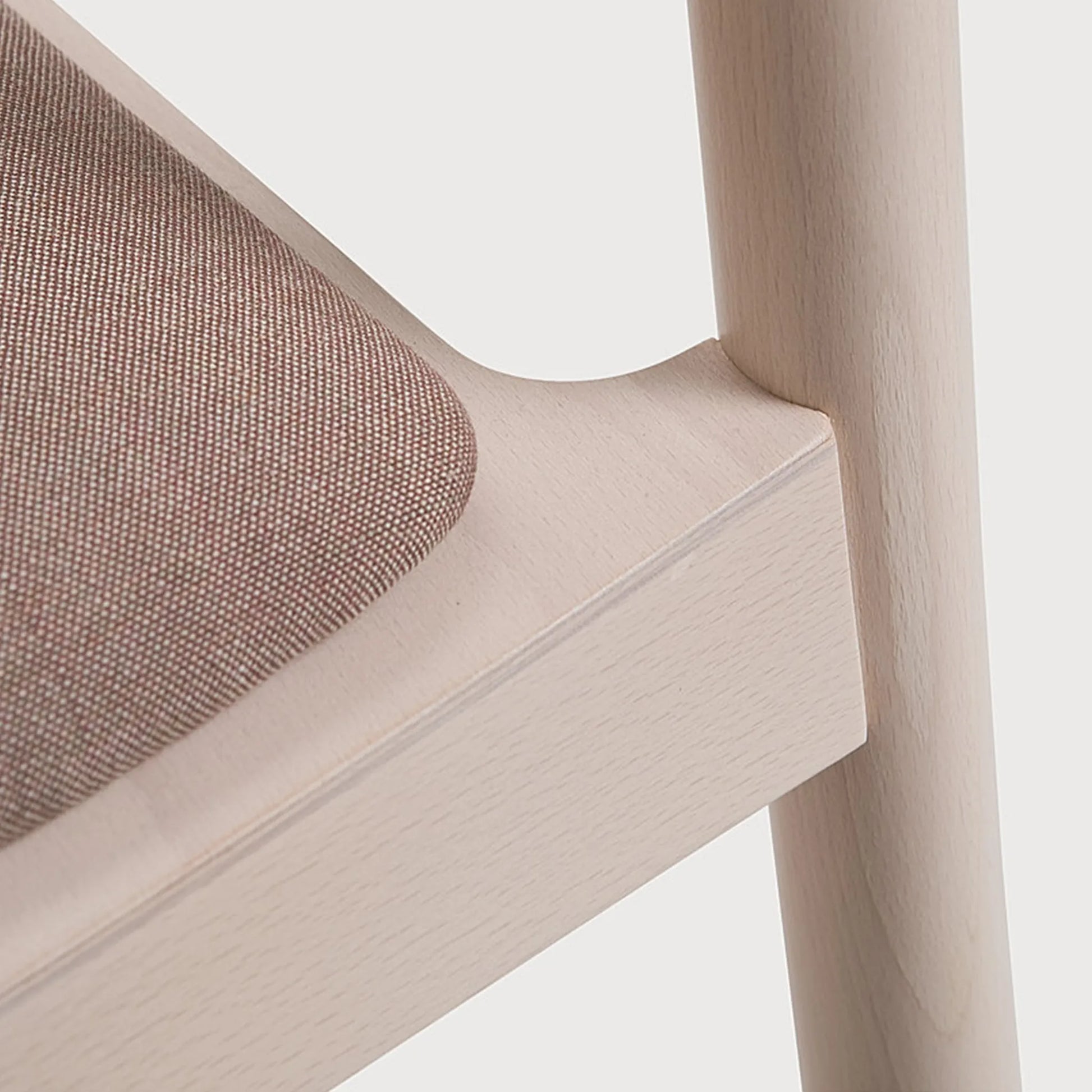 Miękkie, tapicerowane siedzisko zapewnia wysoki komfort siedzenia, nawet podczas dłuższego użytkowania, natomiast solidna, bukowa konstrukcja i wyprofilowane, drewniane oparcie dbają o stabilność i ergonomię. Całość utrzymana jest w ponadczasowym, minimalistycznym stylu, który płynnie łączy się z różnymi typami wnętrz – od naturalnych i skandynawskich po nowoczesne, loftowe przestrzenie.