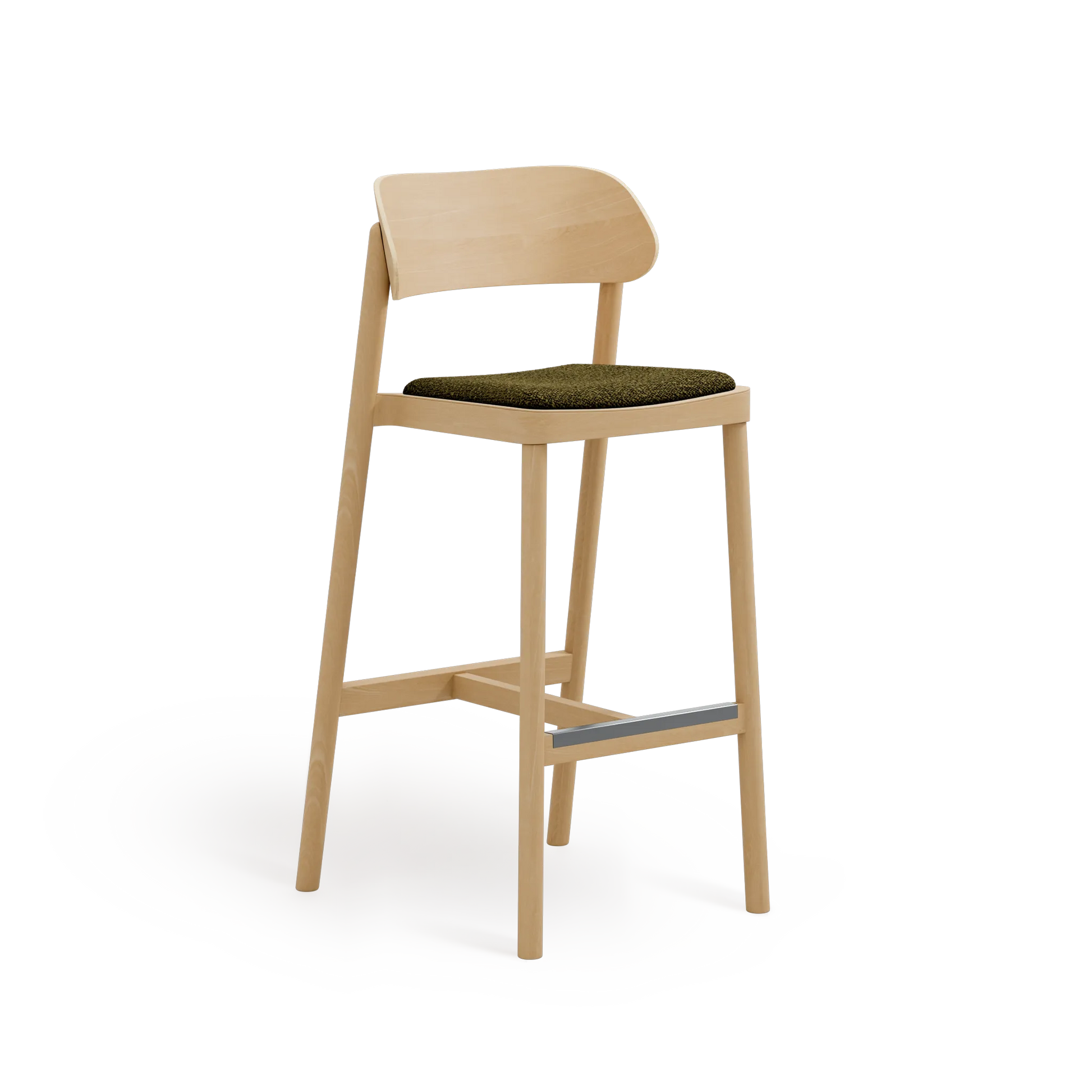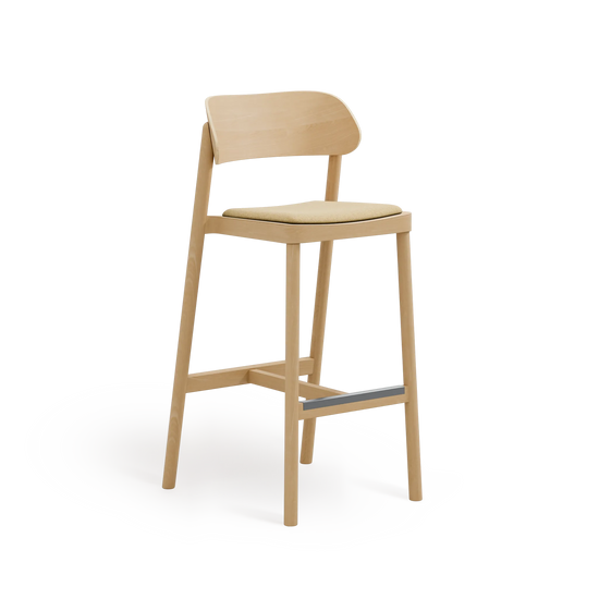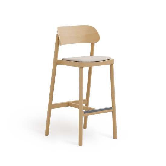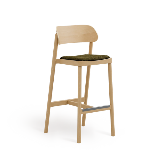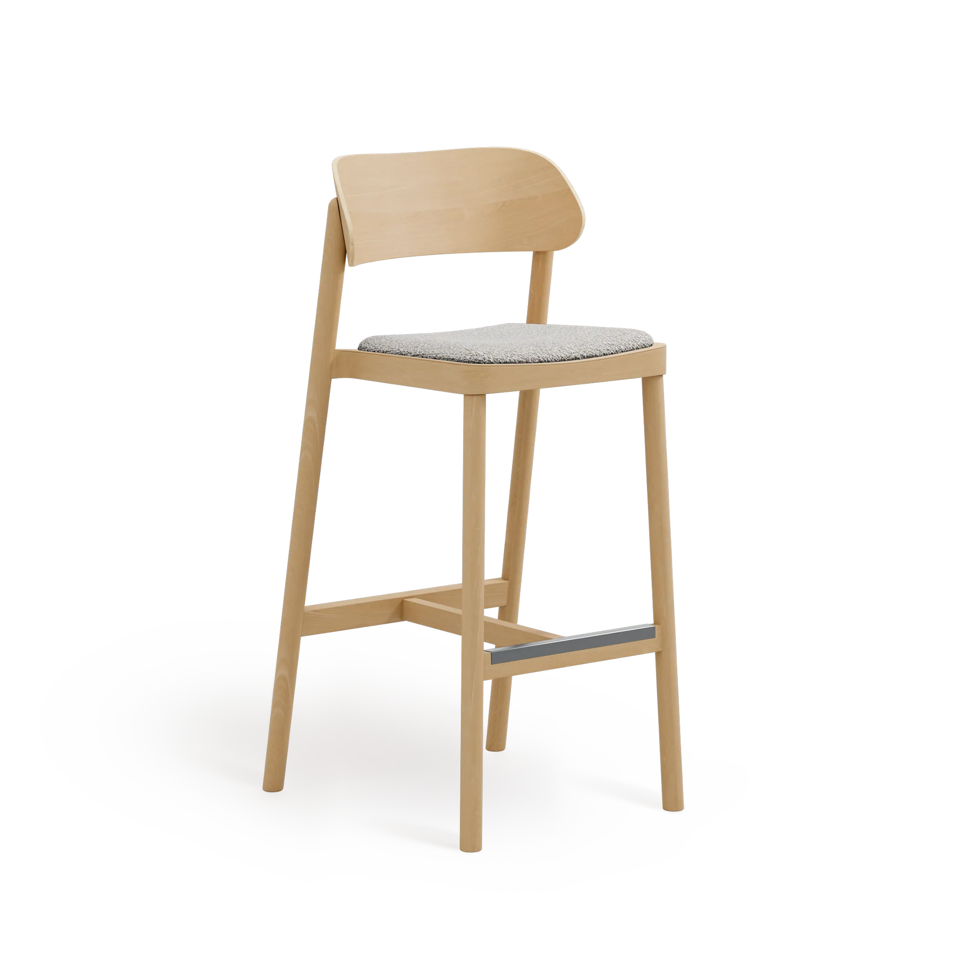 Miękkie, tapicerowane siedzisko zapewnia wysoki komfort siedzenia, nawet podczas dłuższego użytkowania, natomiast solidna, bukowa konstrukcja i wyprofilowane, drewniane oparcie dbają o stabilność i ergonomię. Całość utrzymana jest w ponadczasowym, minimalistycznym stylu, który płynnie łączy się z różnymi typami wnętrz – od naturalnych i skandynawskich po nowoczesne, loftowe przestrzenie.