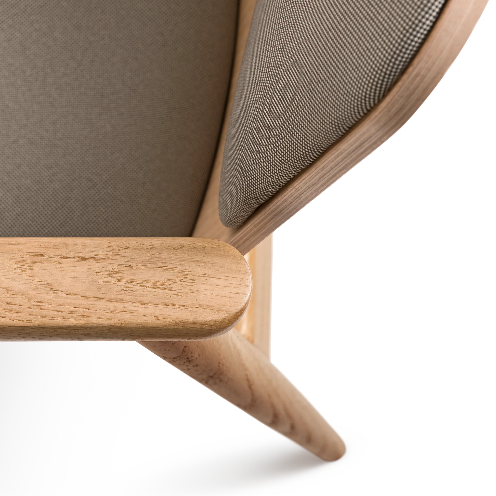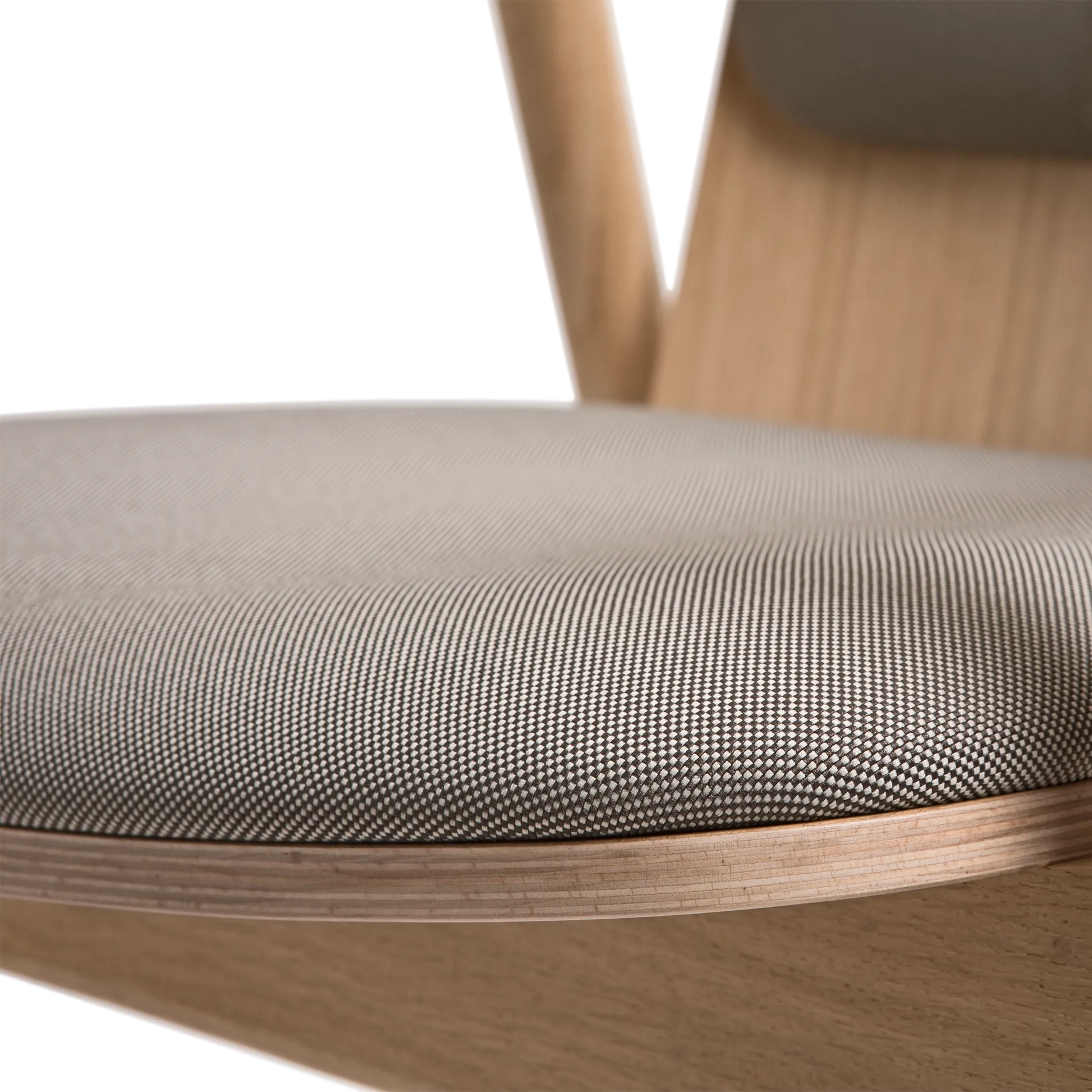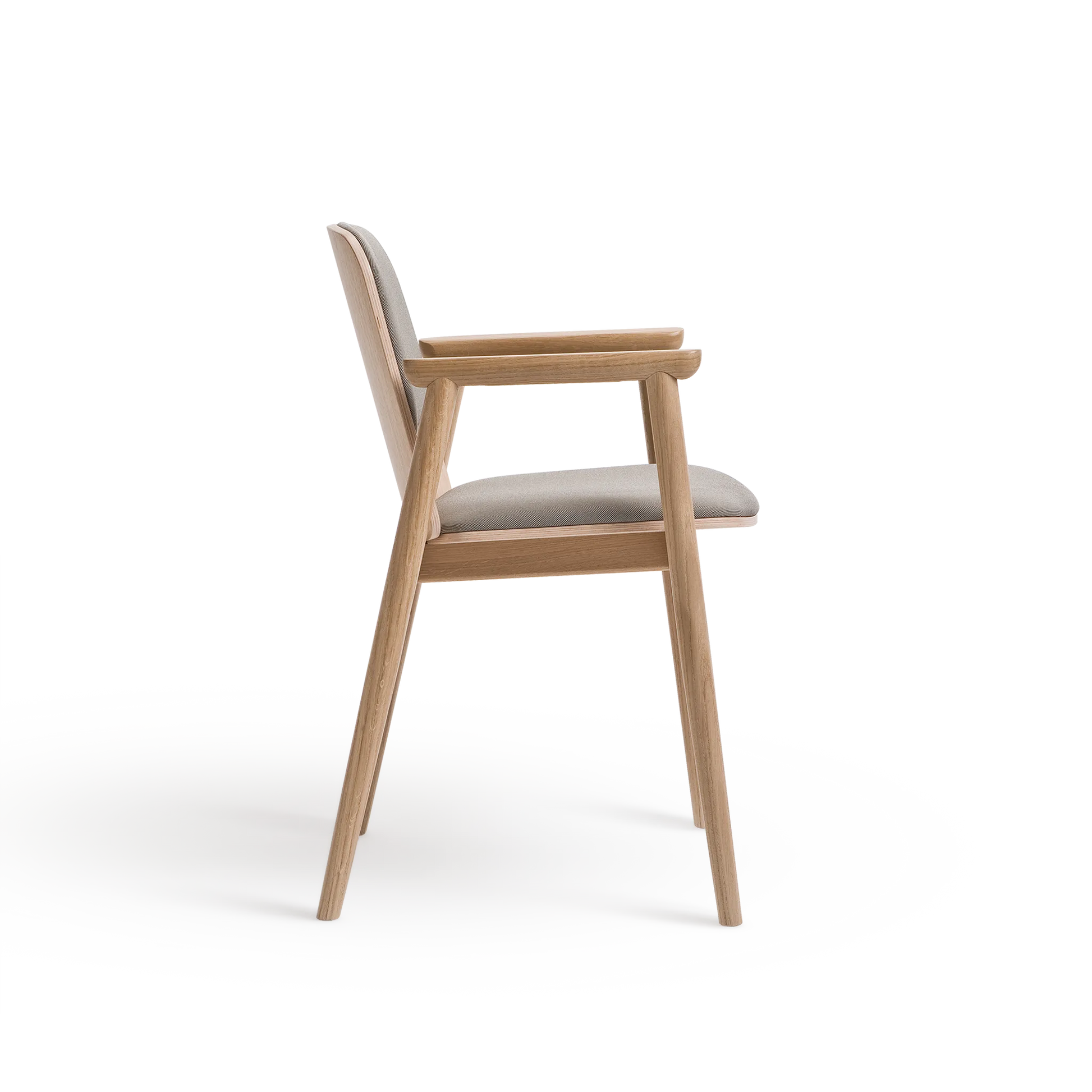 Kolekcja Prop charakteryzuje się oszczędnym podejściem do formy. Konstrukcja opiera się na toczonych drewnianych nogach, zestawionych z siedziskiem tapicerowanym wysokiej jakości tkaniną oraz tapicerowanym oparciem z profilowanej sklejki. Dyskretne łączenia elementów podkreślają kunszt wykonania, a starannie dobrany kąt nachylenia oparcia oraz podłokietniki z litego drewna zapewniają wysoki komfort użytkowania.