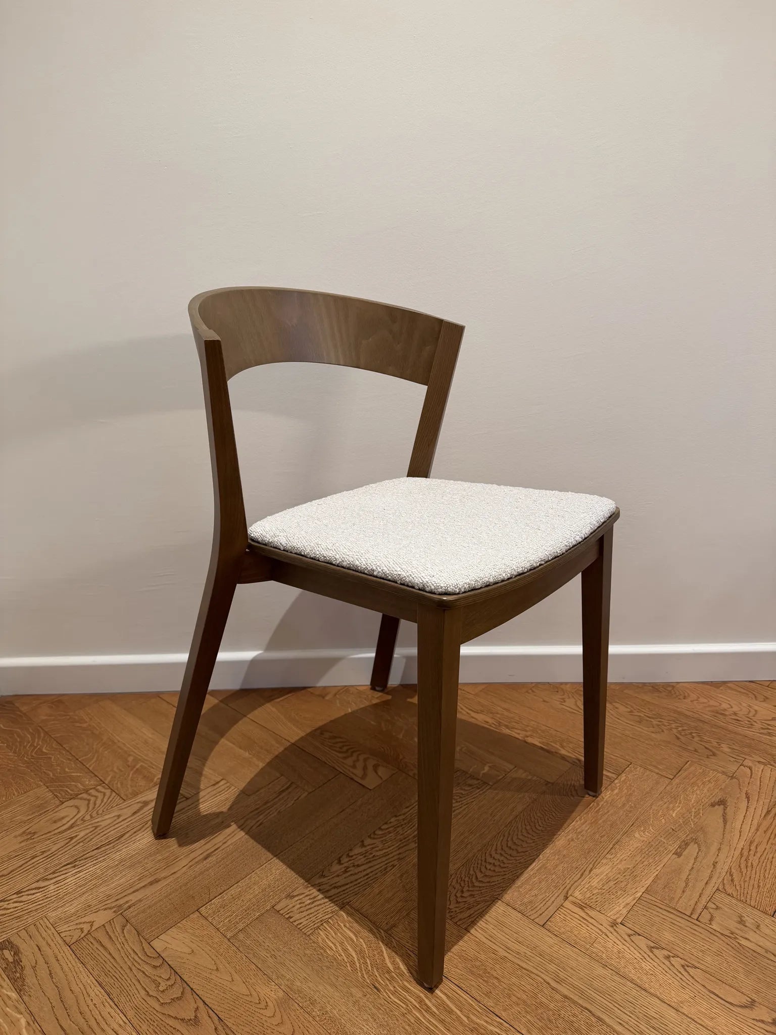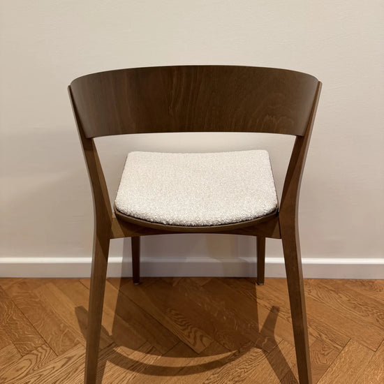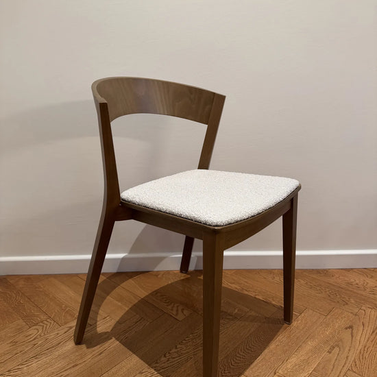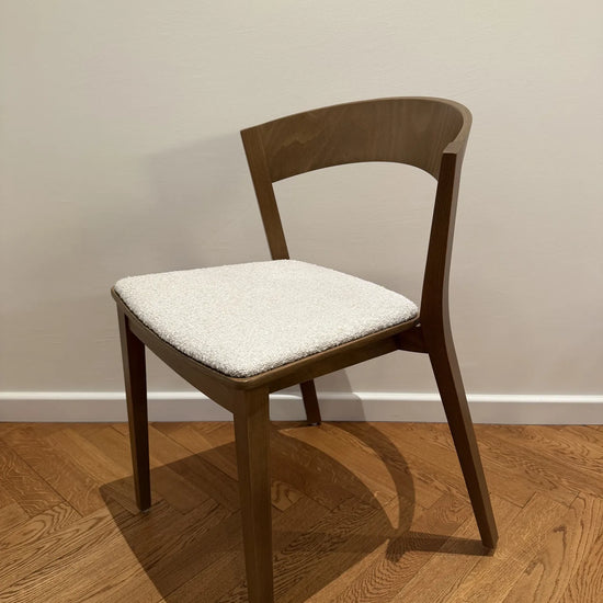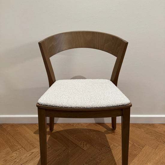 Miękkie siedzisko zwiększa wygodę siedzenia, nie zaburzając przy tym charakterystycznej formy mebla. Krzesło dostępne jest w drewnie bukowym lub dębowym, w kilku wybarwieniach i różnych tkaninach. Wybór wybarwienia i tapicerki pozwala dopasować mebel do różnych wnętrz – od domowych jadalni po eleganckie przestrzenie komercyjne.
