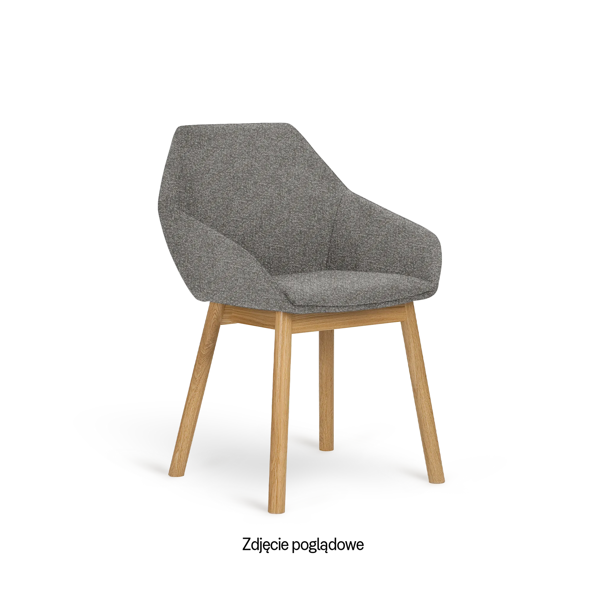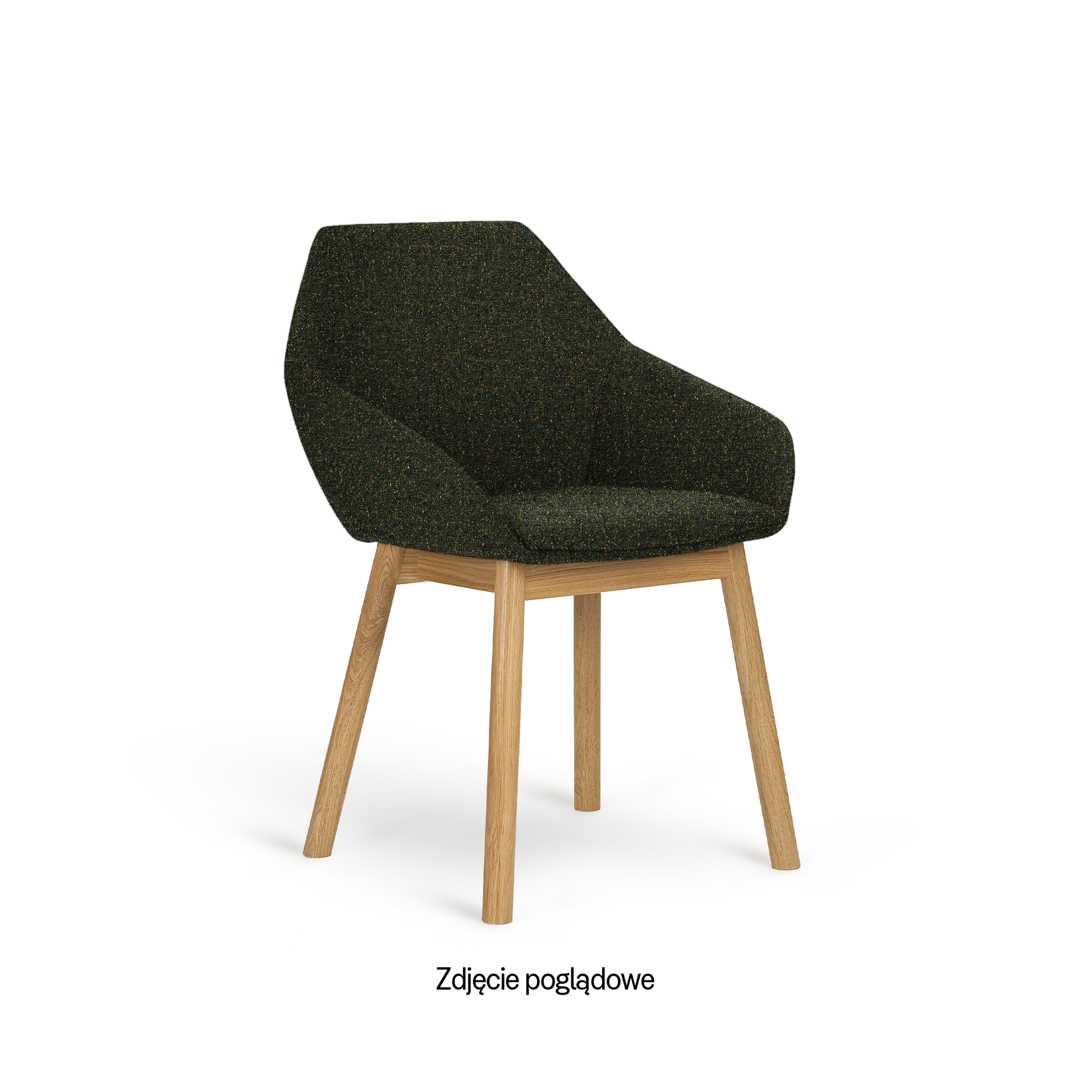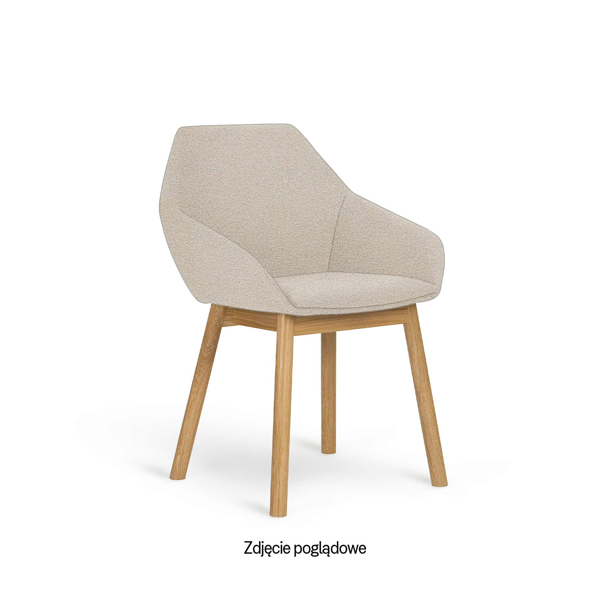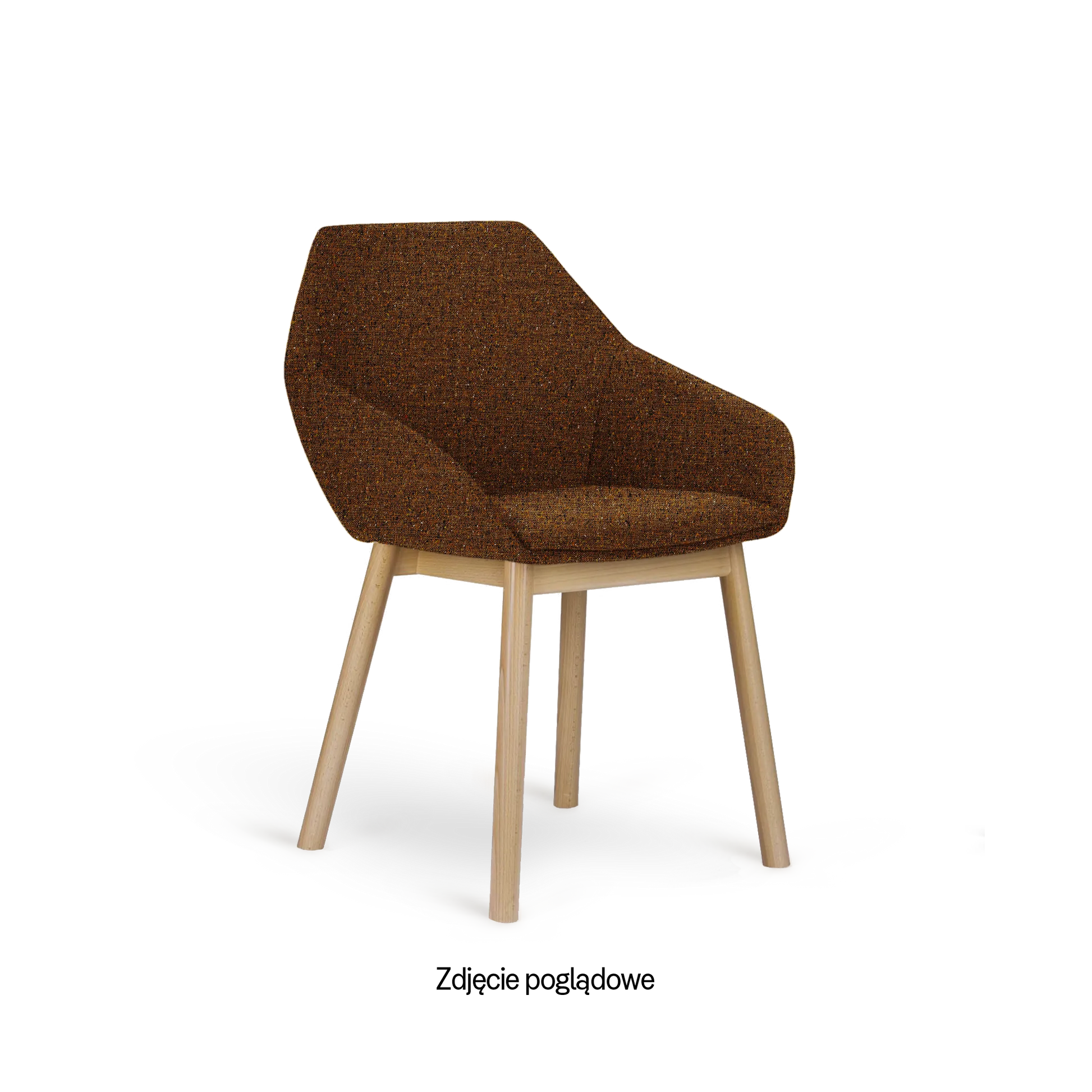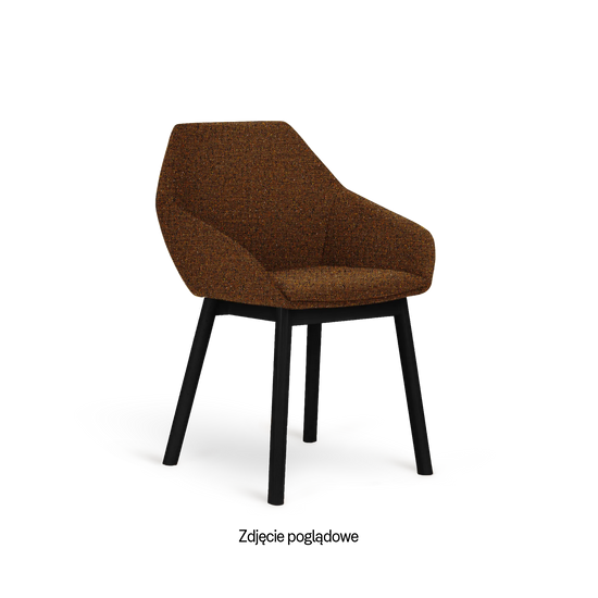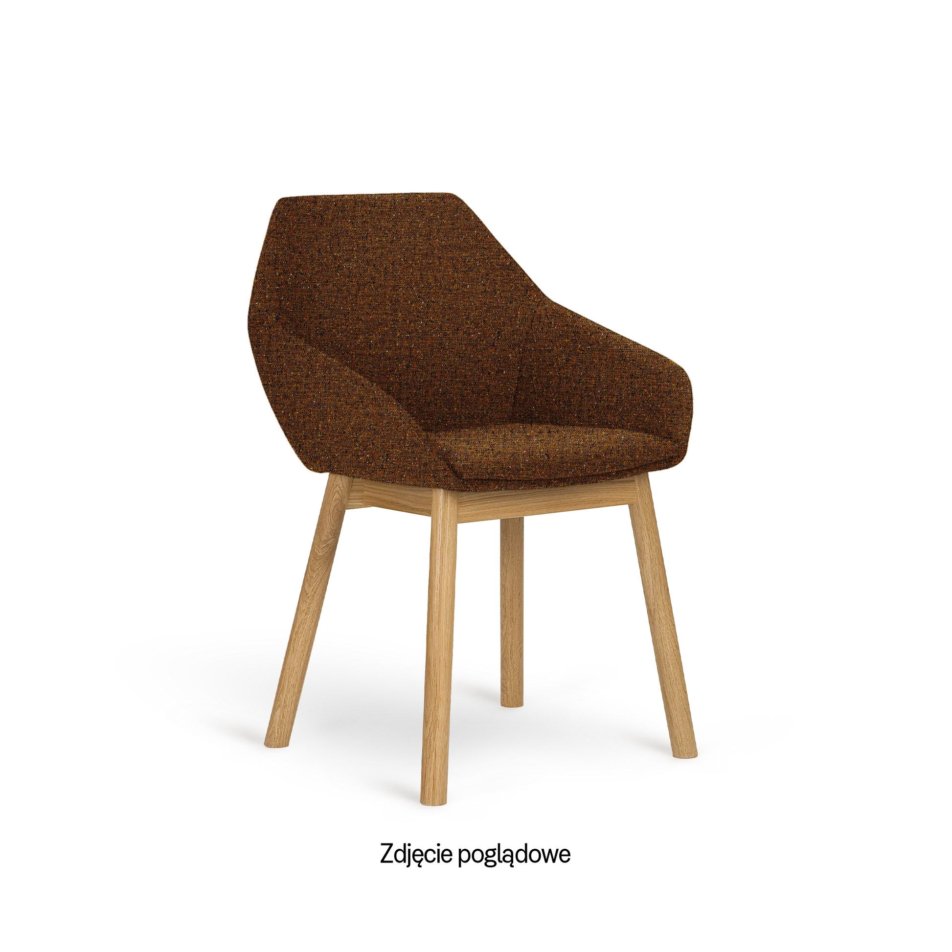 Model Tuk A-5051 z bazą z litego drewna – bukowego lub dębowego – łączy wyraziste wzornictwo z naturalnym materiałem. Tapicerowane siedzisko i oparcie podkreślają elegancję formy, wnosząc do wnętrz przytulność i dopracowany detal.