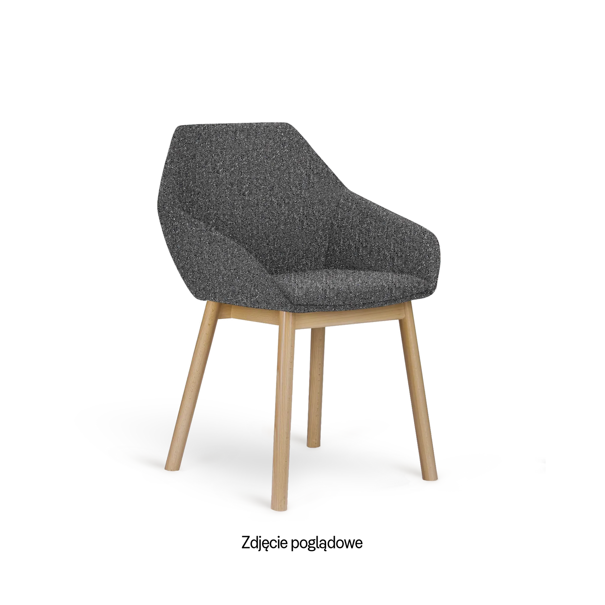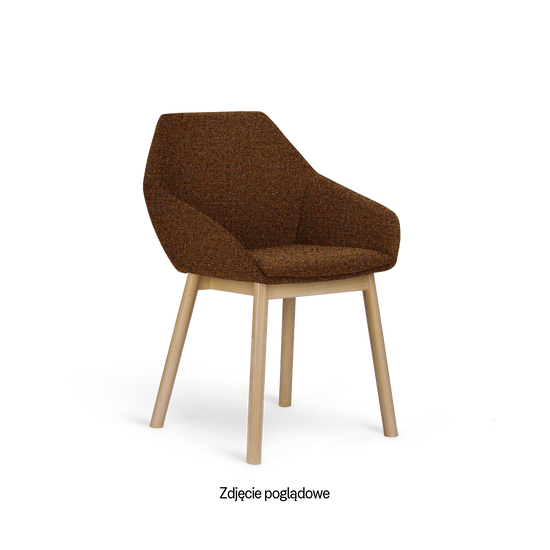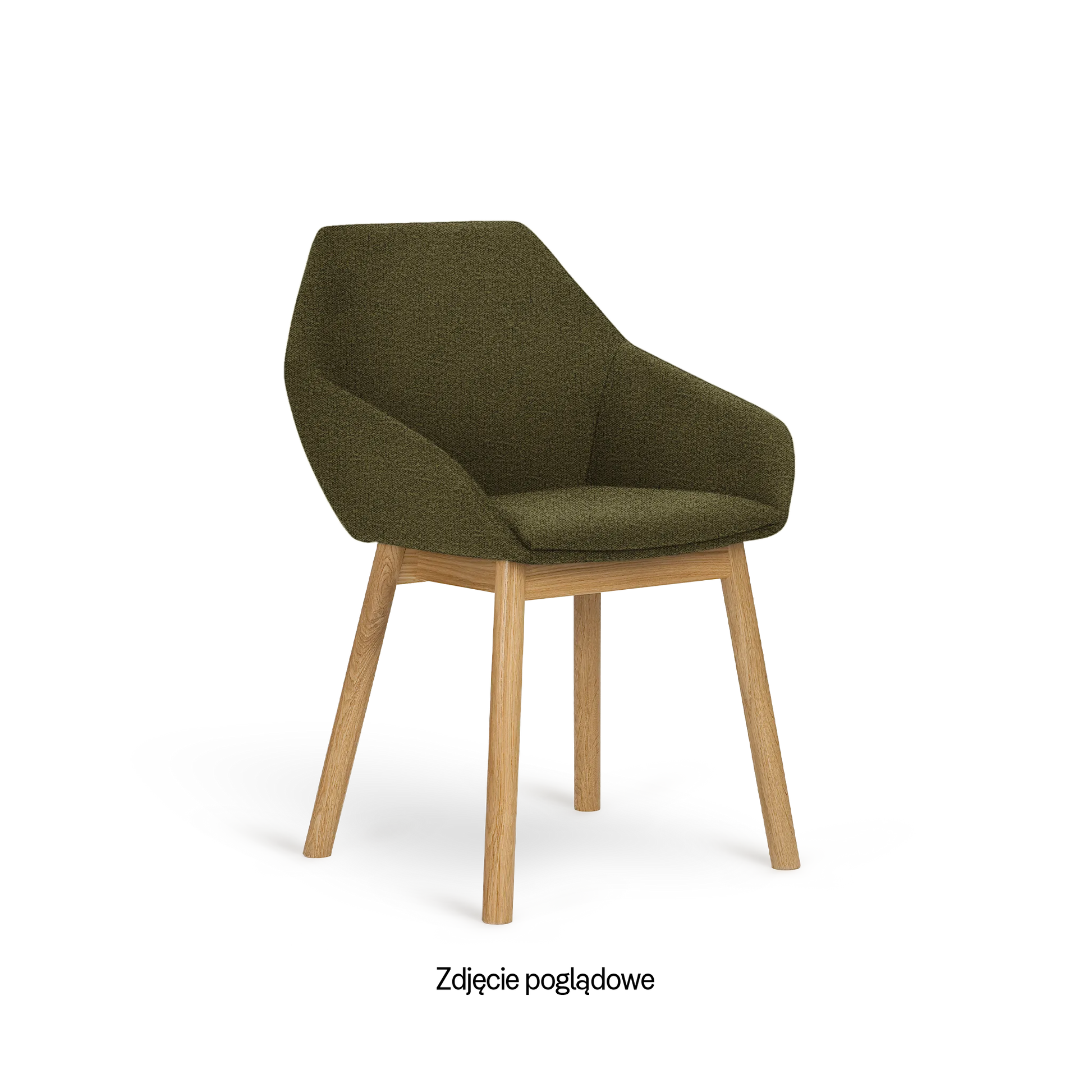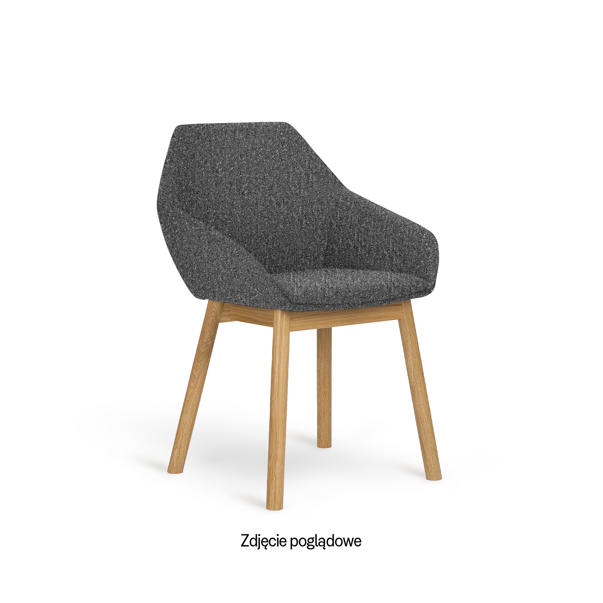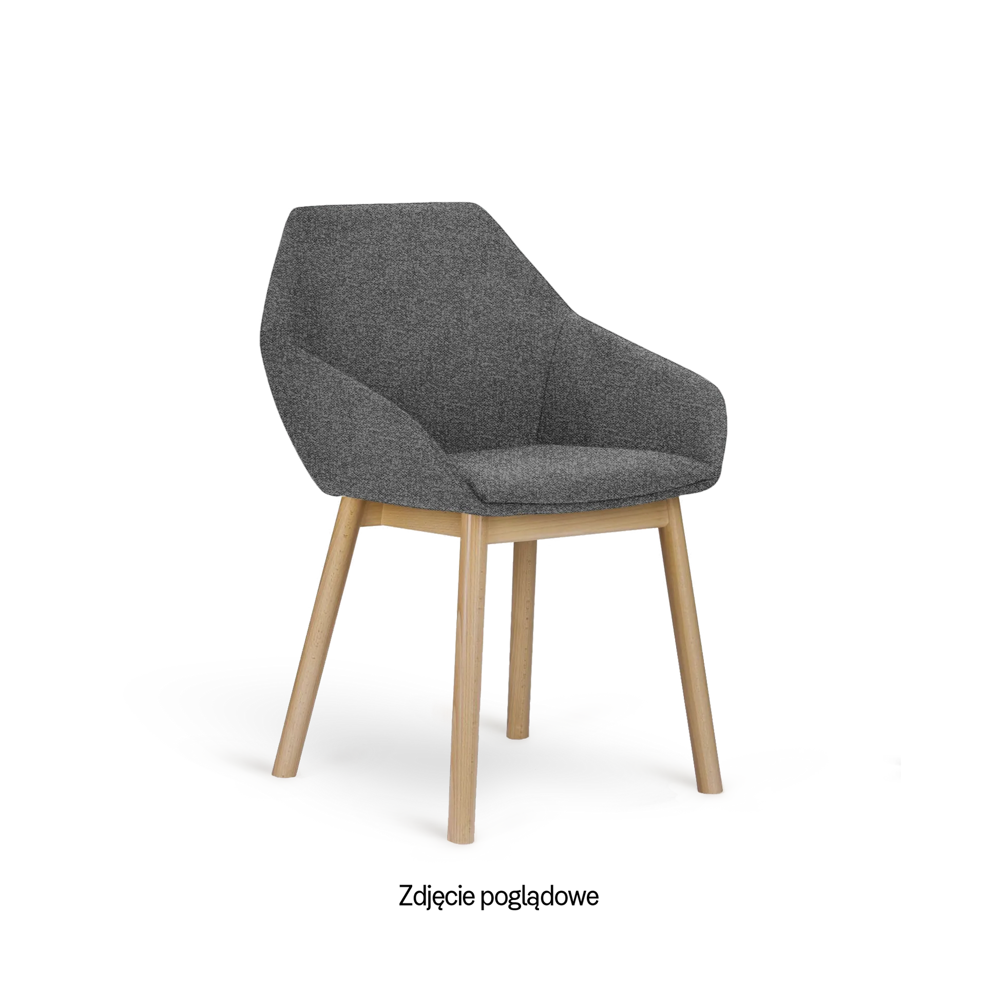 Model Tuk A-5051 z bazą z litego drewna – bukowego lub dębowego – łączy wyraziste wzornictwo z naturalnym materiałem. Tapicerowane siedzisko i oparcie podkreślają elegancję formy, wnosząc do wnętrz przytulność i dopracowany detal.
