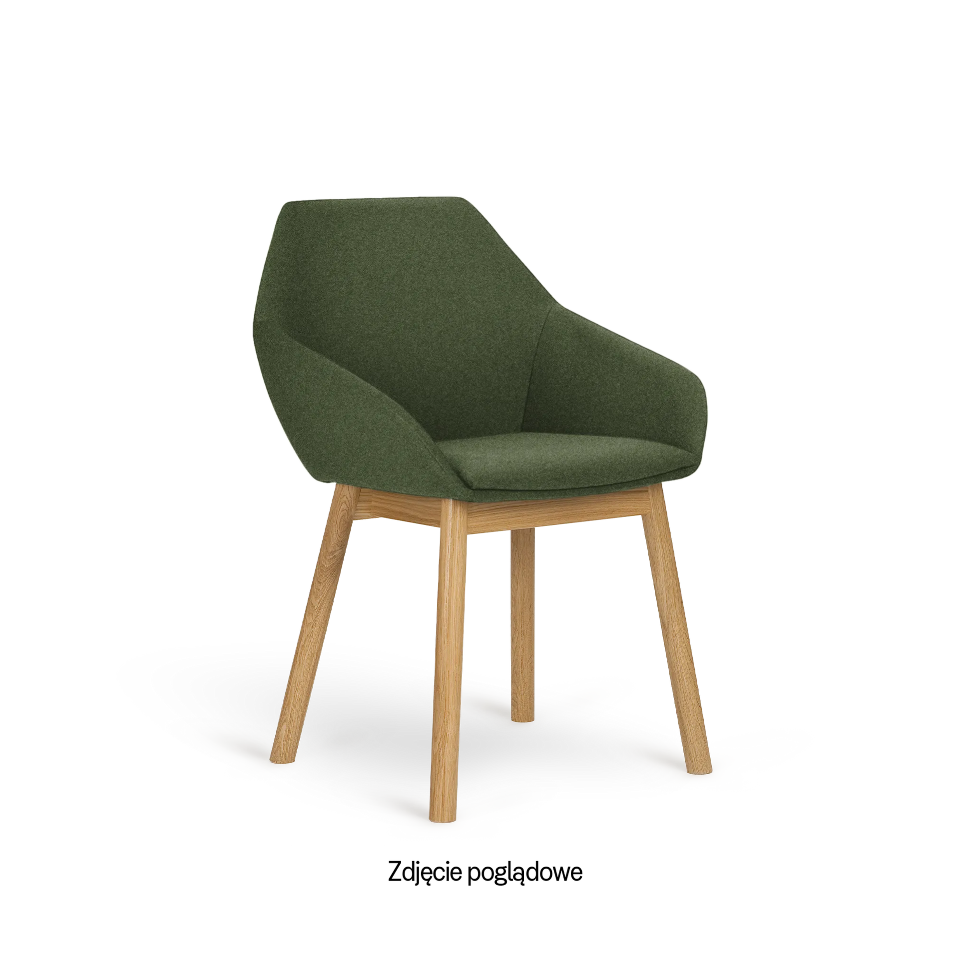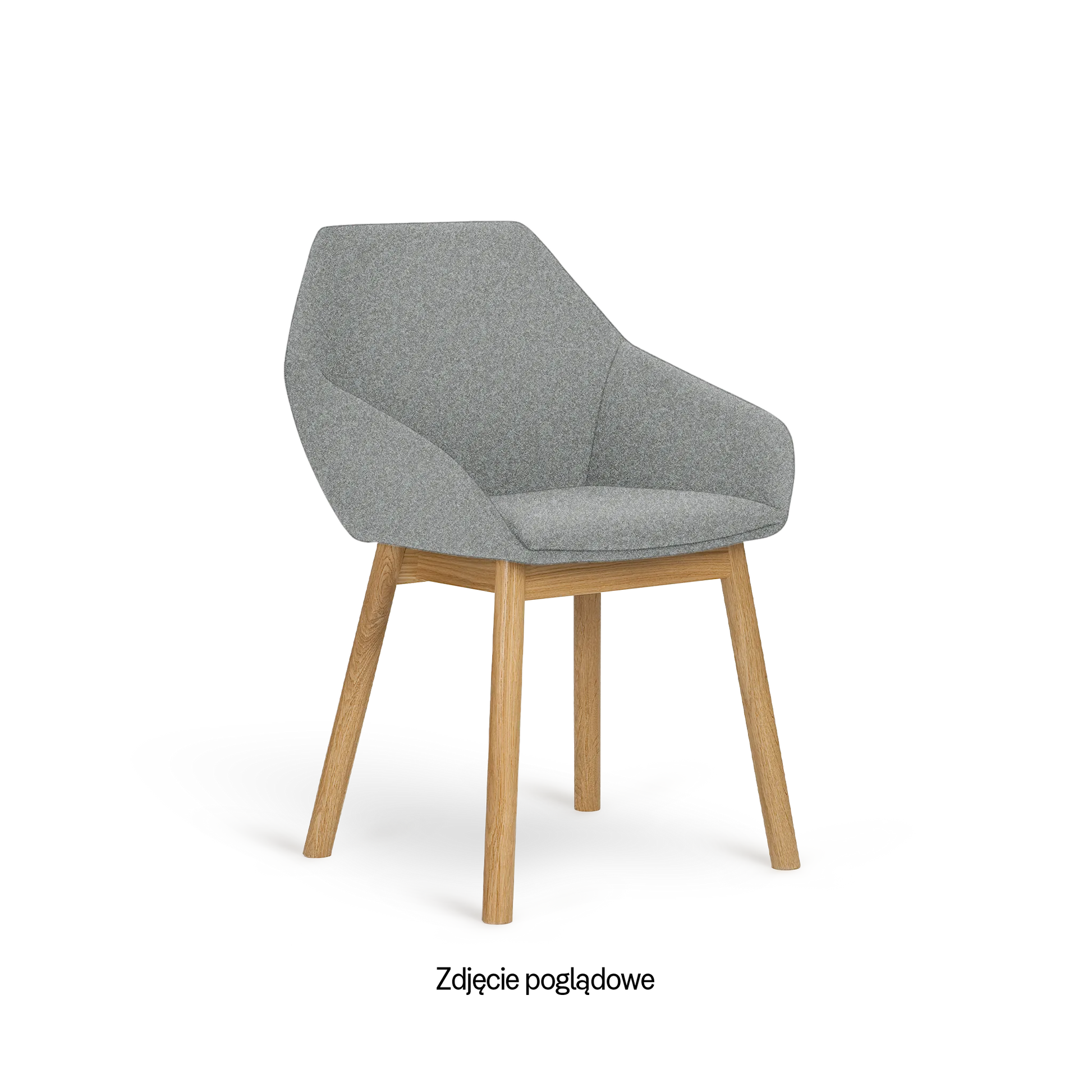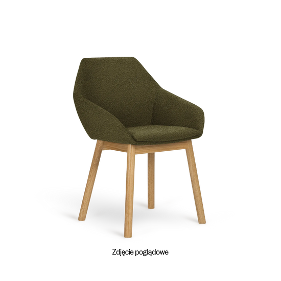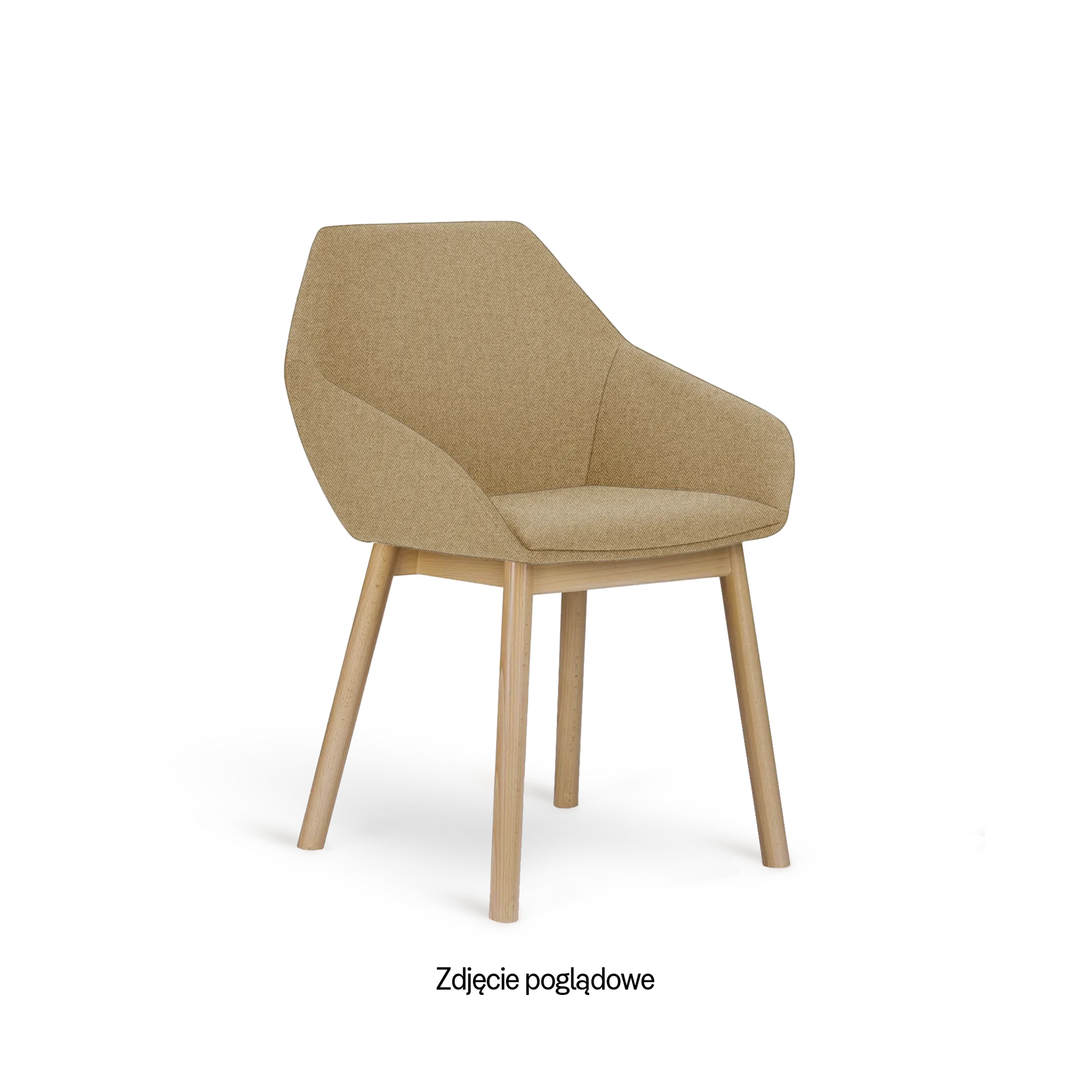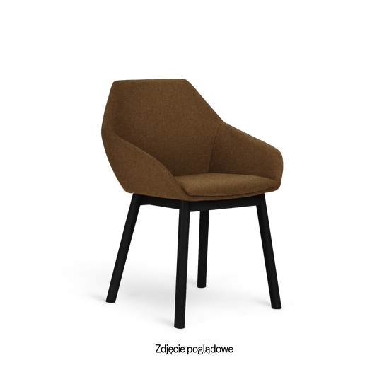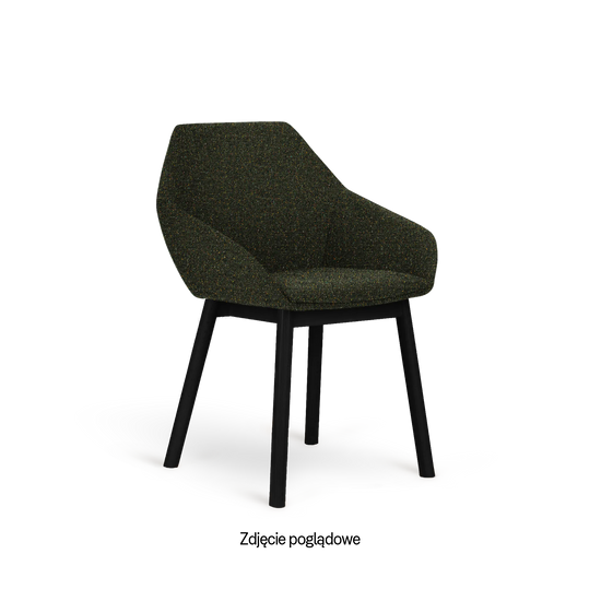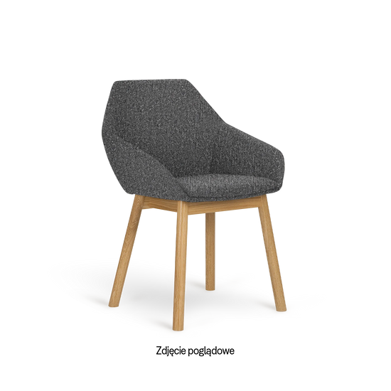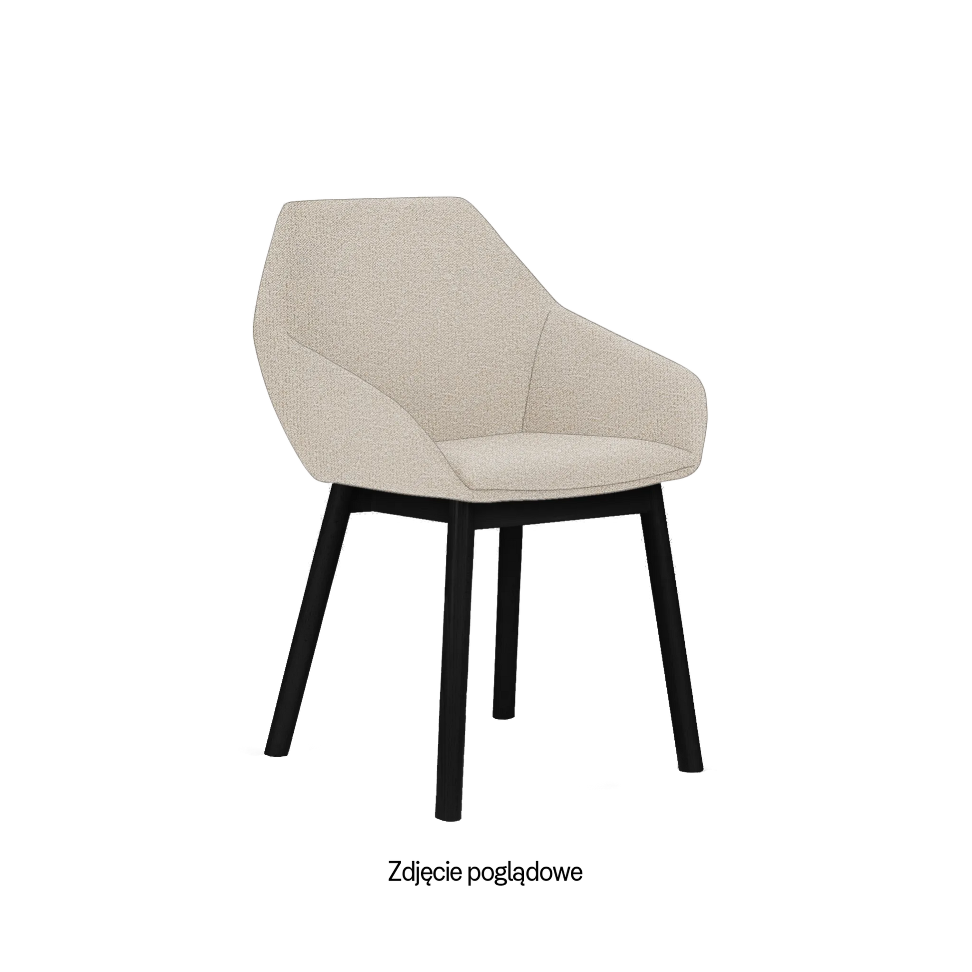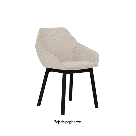 Model Tuk A-5051 z bazą z litego drewna – bukowego lub dębowego – łączy wyraziste wzornictwo z naturalnym materiałem. Tapicerowane siedzisko i oparcie podkreślają elegancję formy, wnosząc do wnętrz przytulność i dopracowany detal.
