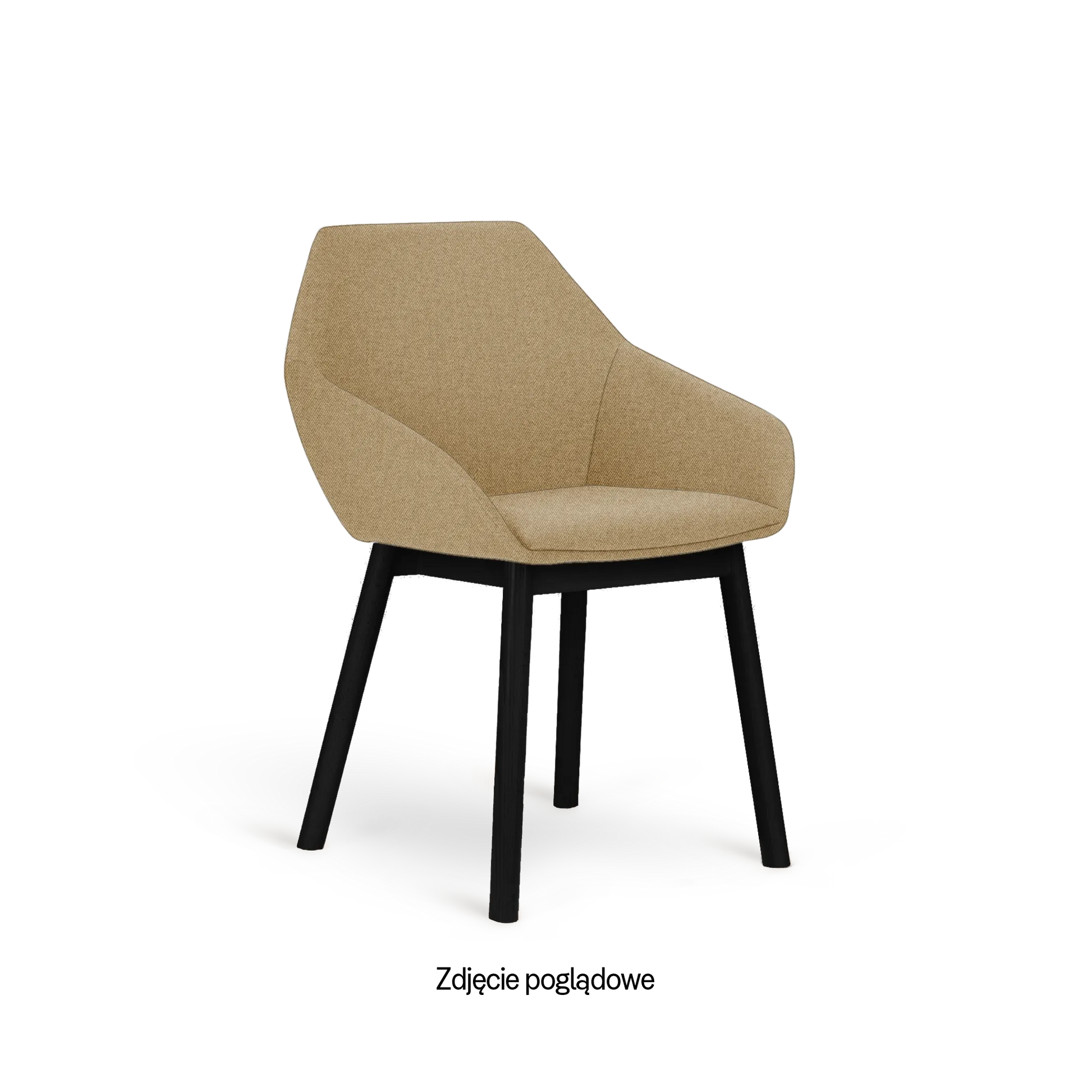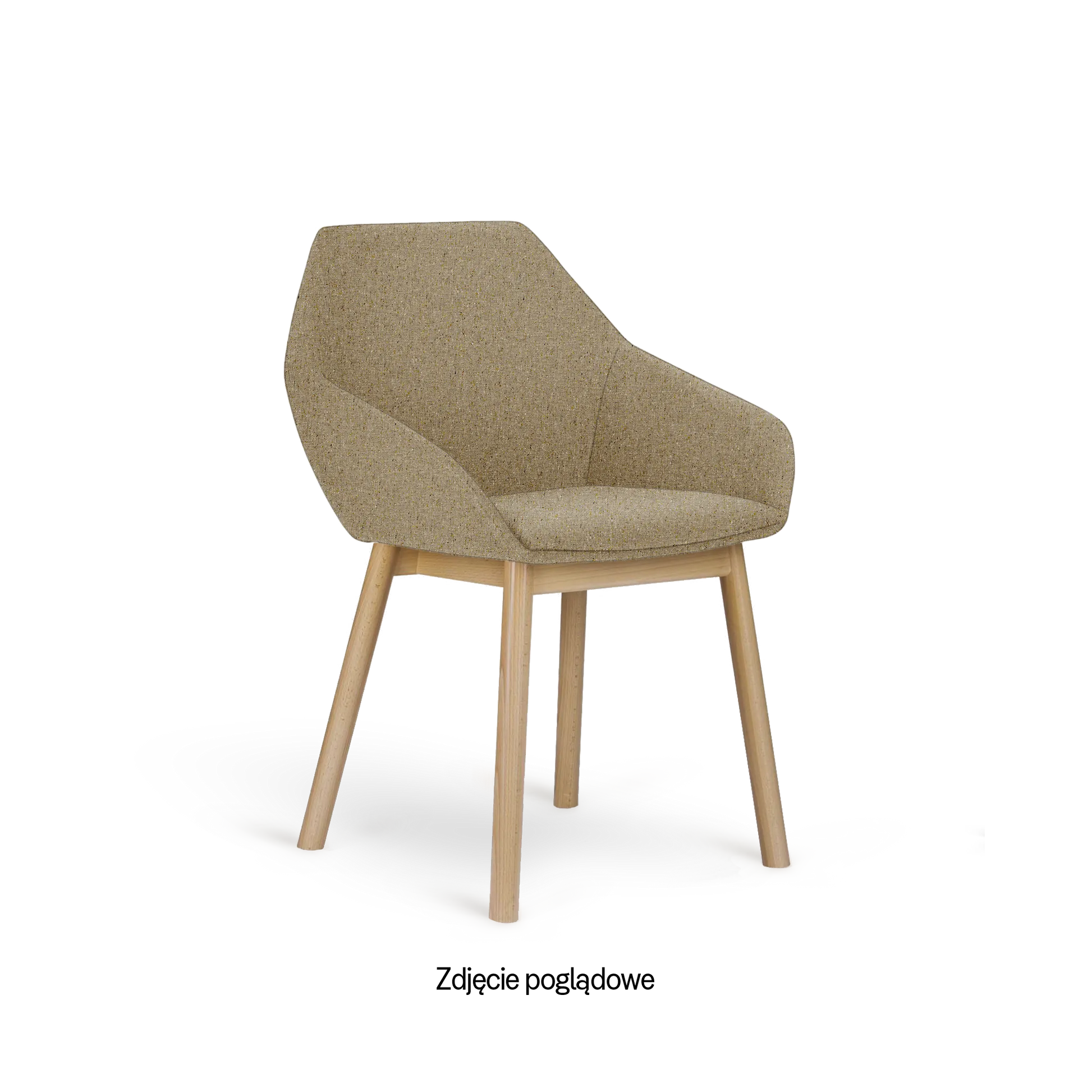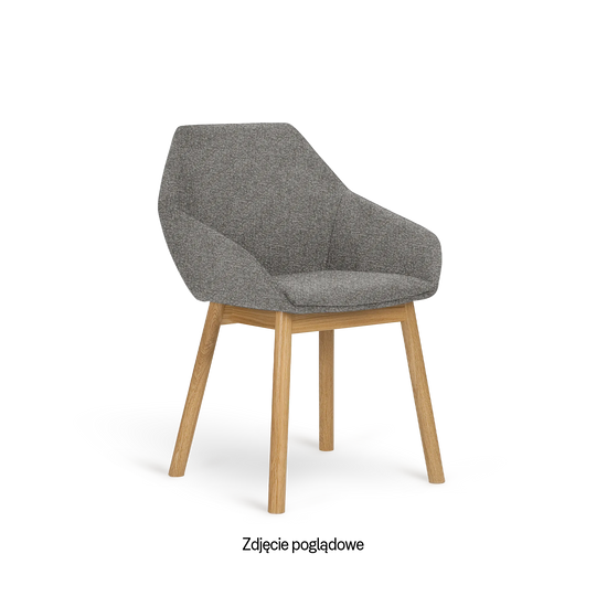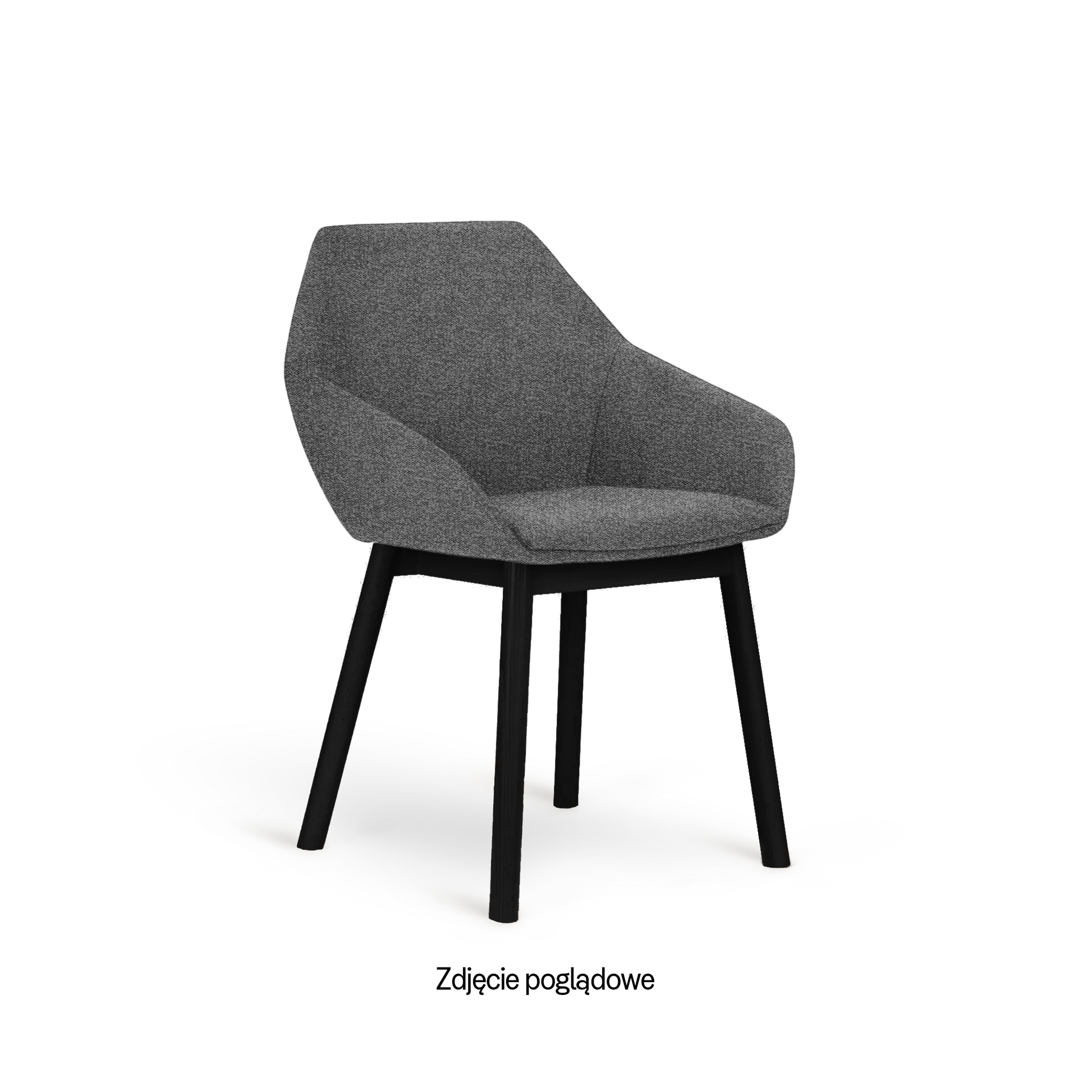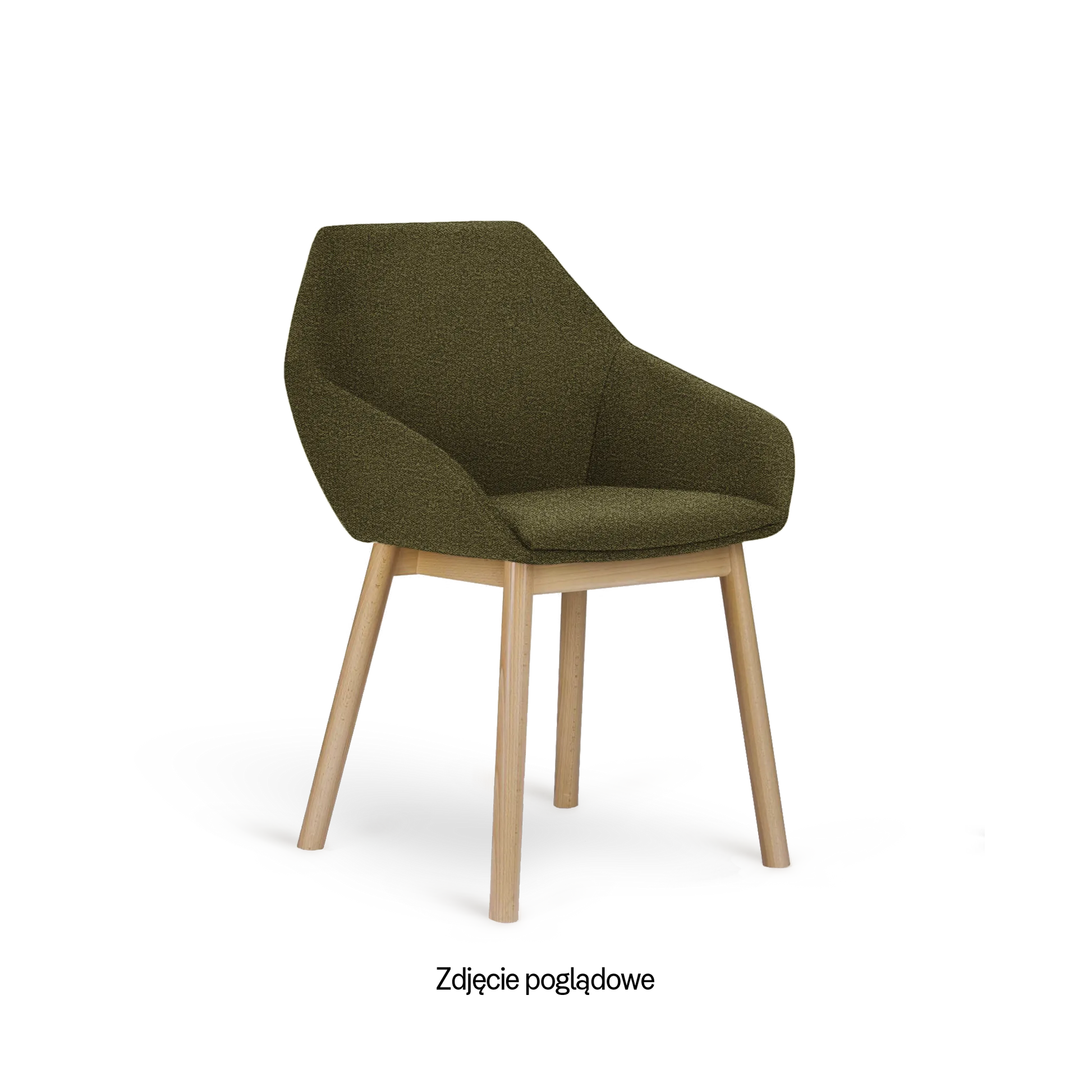 Model Tuk A-5051 z bazą z litego drewna – bukowego lub dębowego – łączy wyraziste wzornictwo z naturalnym materiałem. Tapicerowane siedzisko i oparcie podkreślają elegancję formy, wnosząc do wnętrz przytulność i dopracowany detal.