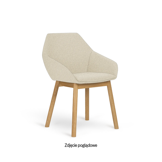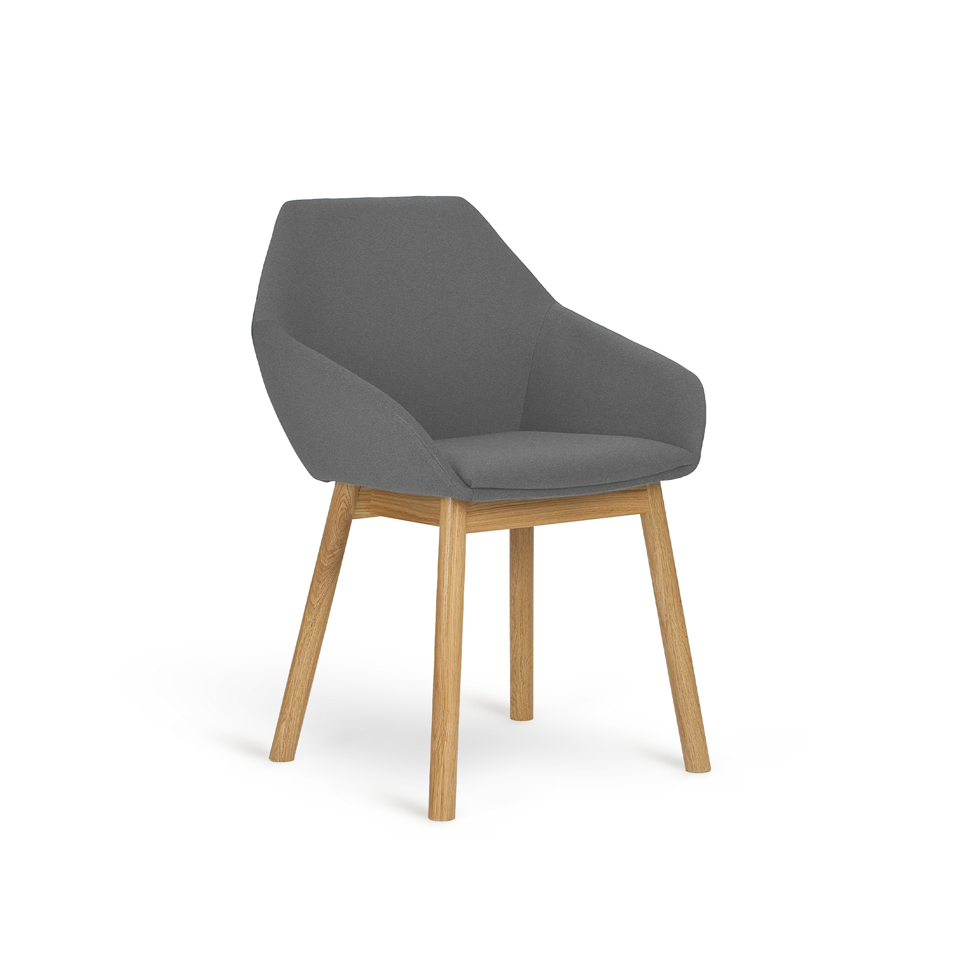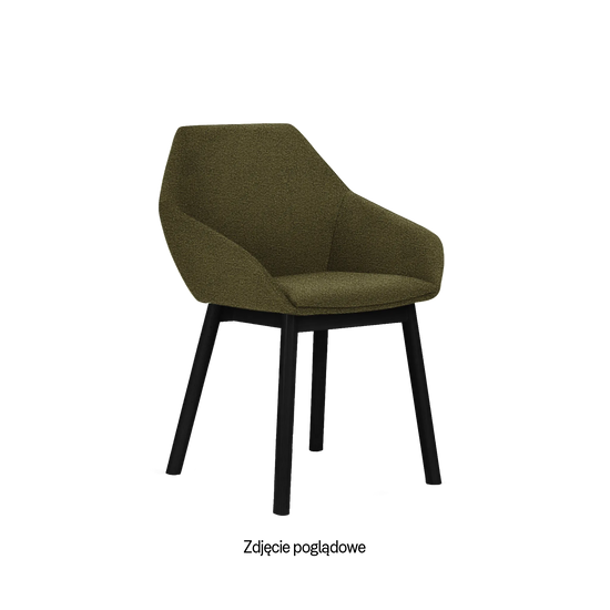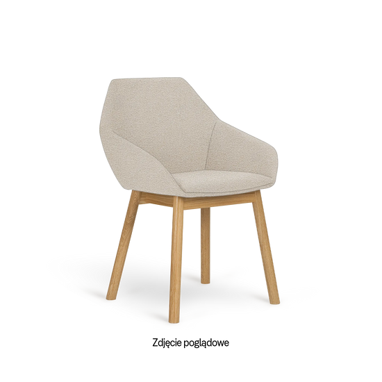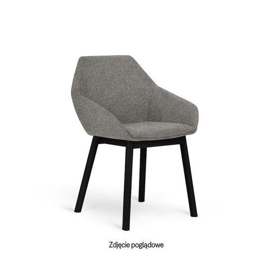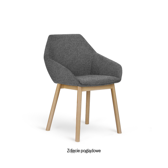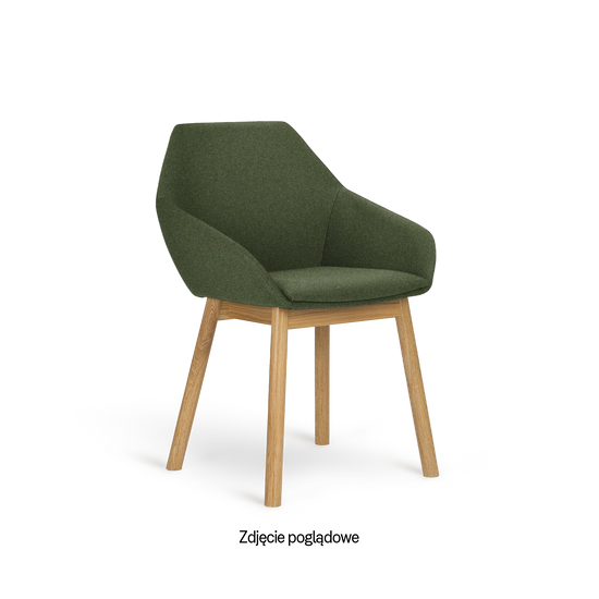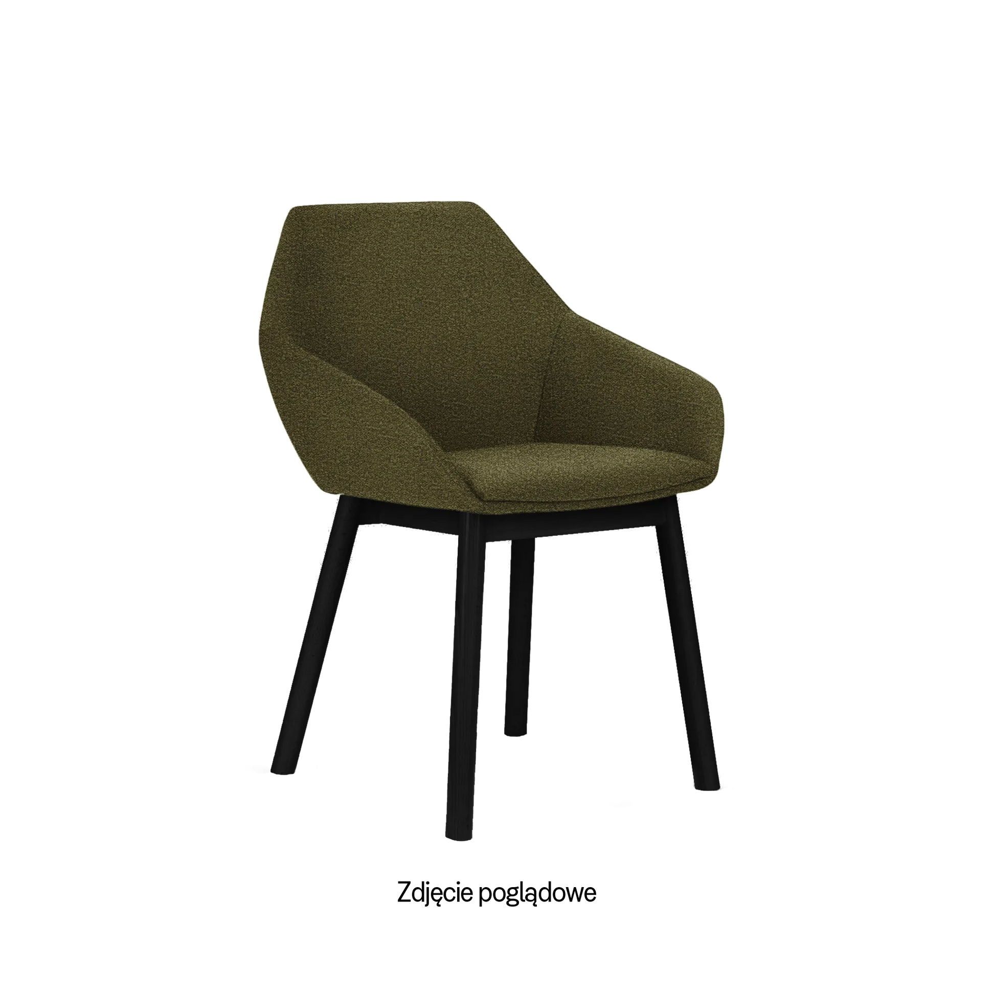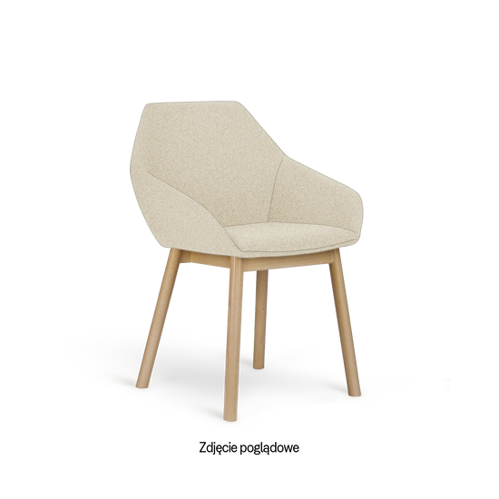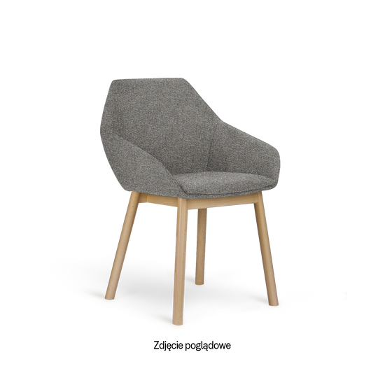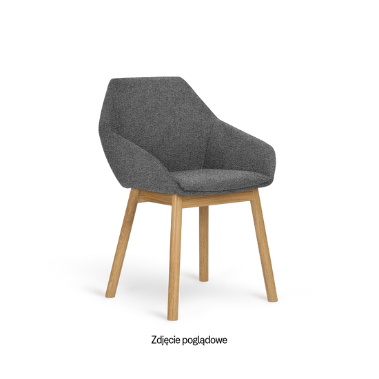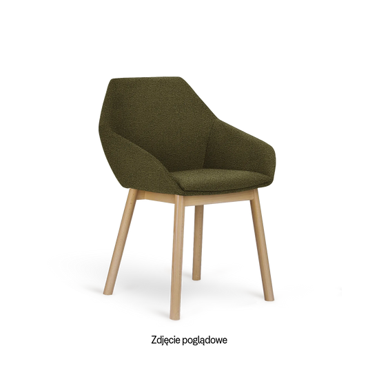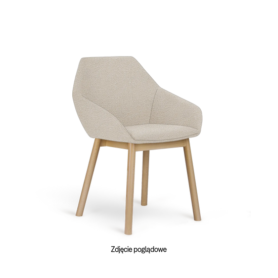 Model Tuk A-5051 z bazą z litego drewna – bukowego lub dębowego – łączy wyraziste wzornictwo z naturalnym materiałem. Tapicerowane siedzisko i oparcie podkreślają elegancję formy, wnosząc do wnętrz przytulność i dopracowany detal.